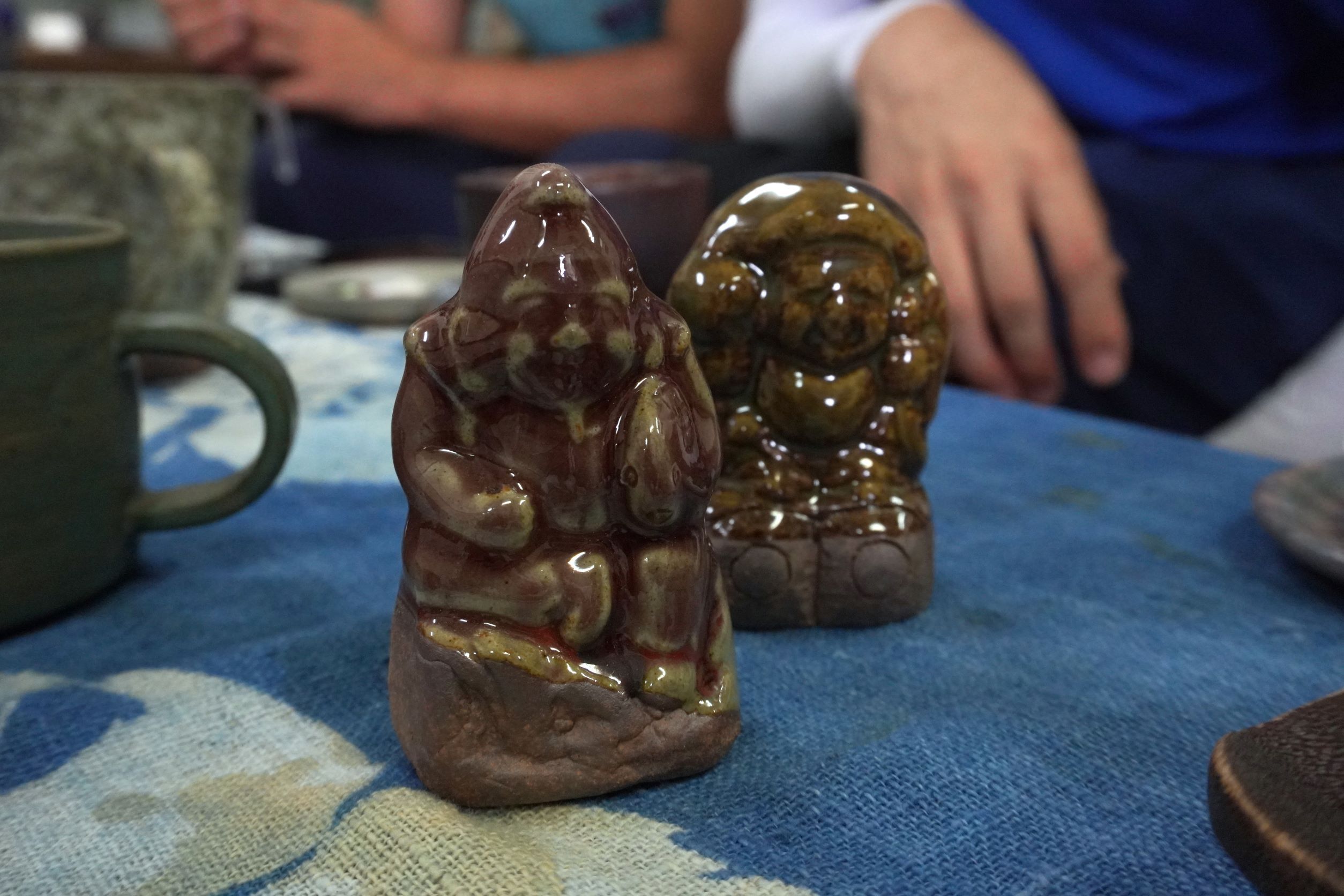 器のお話しながら、有山さんの作る可愛い手のひらサイズの田の神さぁや恵比寿様、大黒様も見せてもらいました。