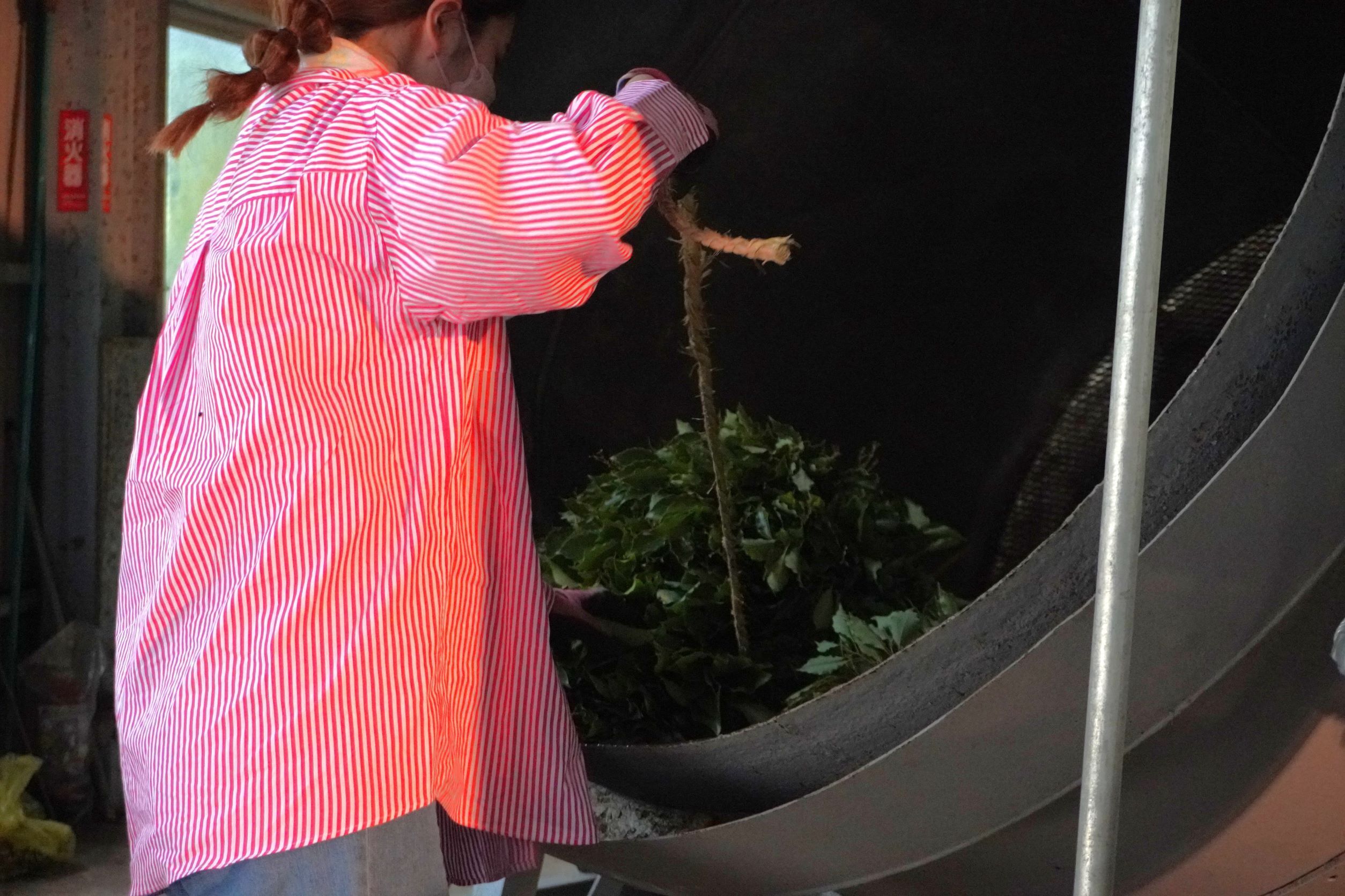蒸留が終わり、蒸留水と精油をとったら、最後に待っているのが、釜から芳樟を取り出す作業です。