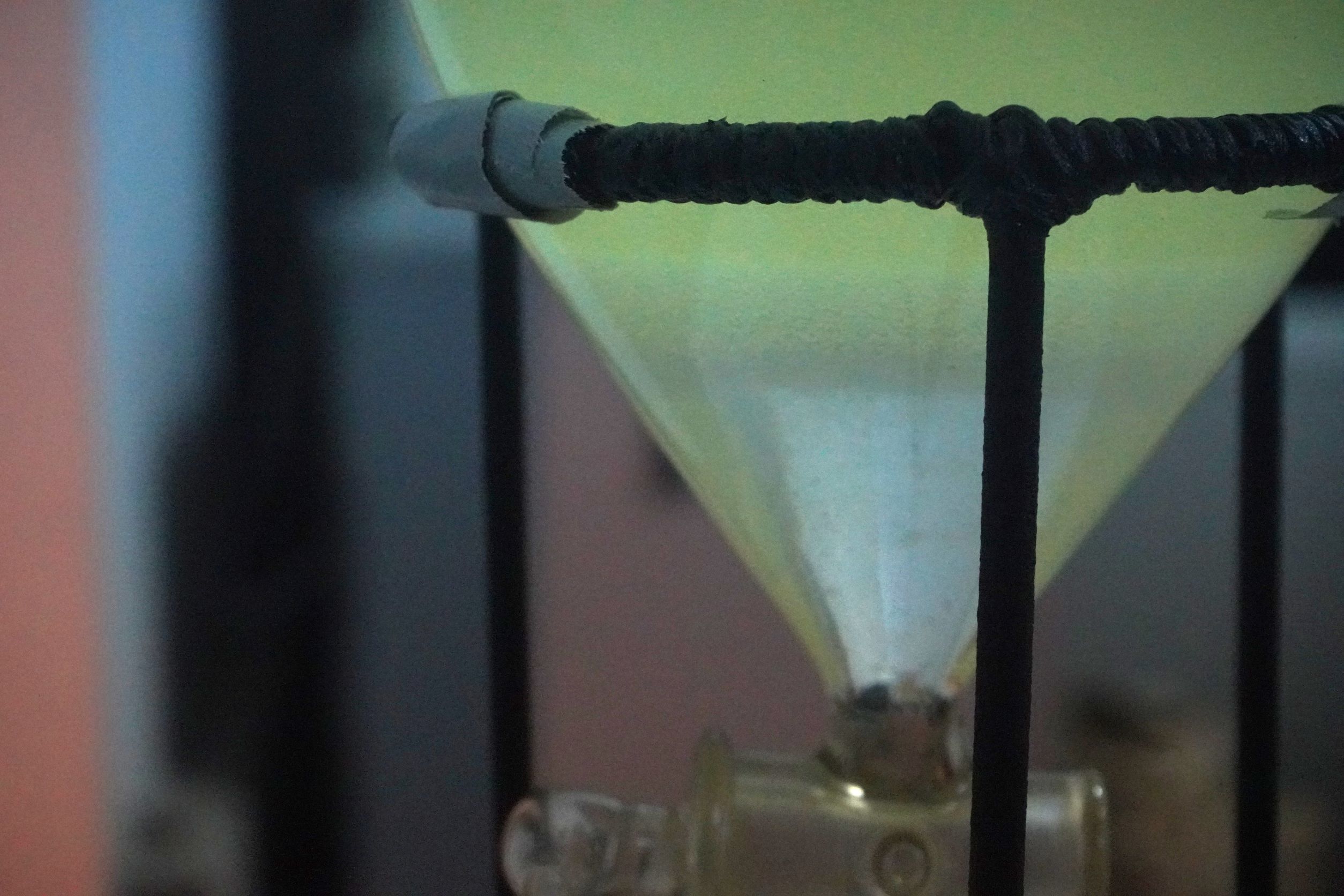 蒸留水から遅れて管から顔を出した精油はさらさらしていて、綺麗な淡い黄色でした。