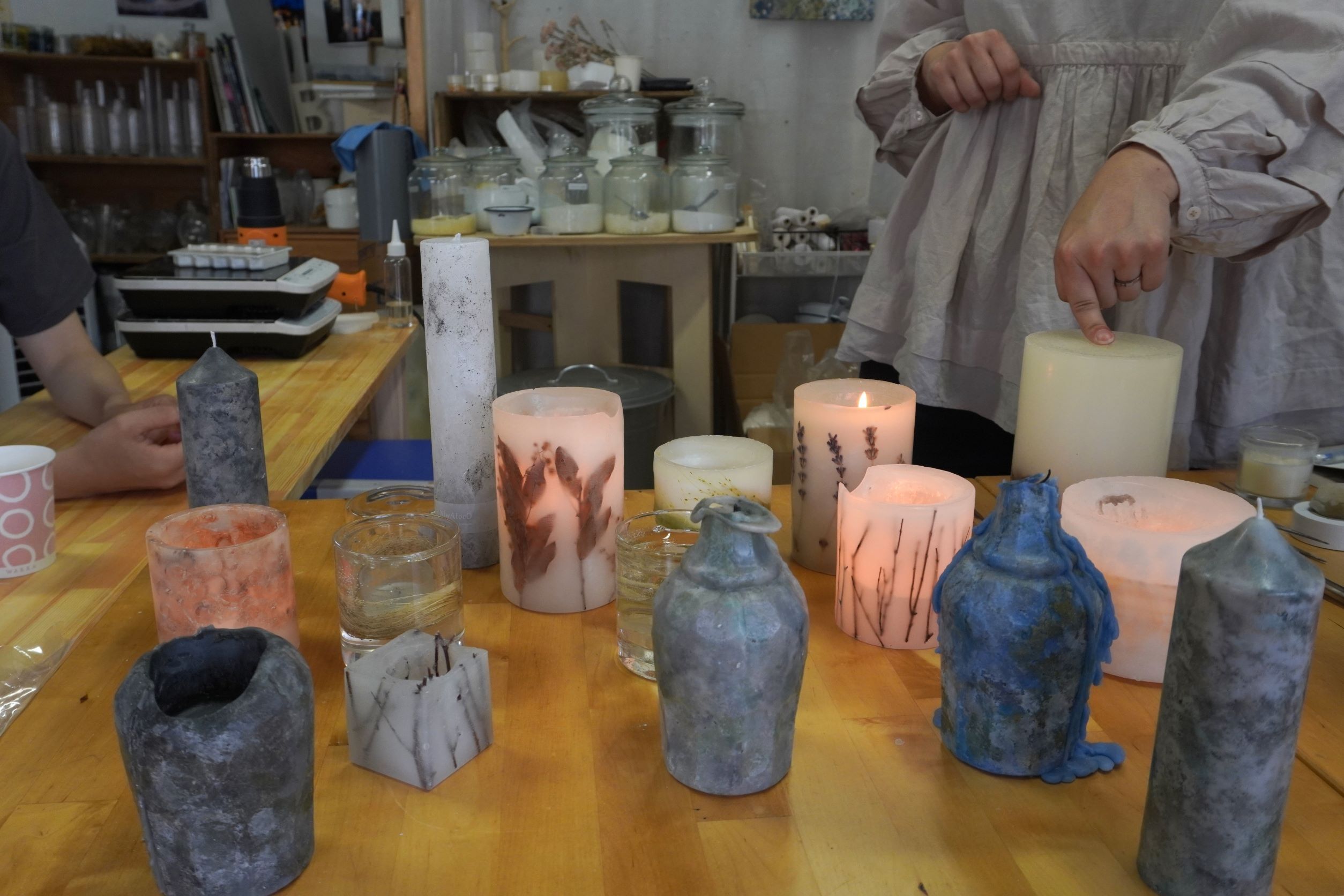 キャンドルアーティストの 田渕 尚子さんに、作られているキャンドルを見せていただき、そこから山猫ならこれかなあれかなと膨らませる時間。