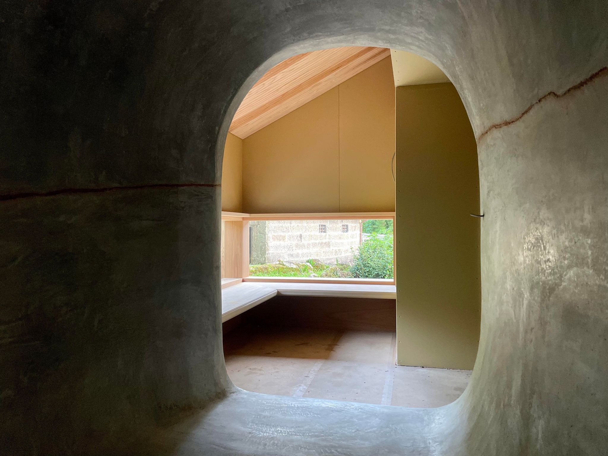 洞窟の壁から床にかけての曲線がいいし、低めの窓もいい感じ。