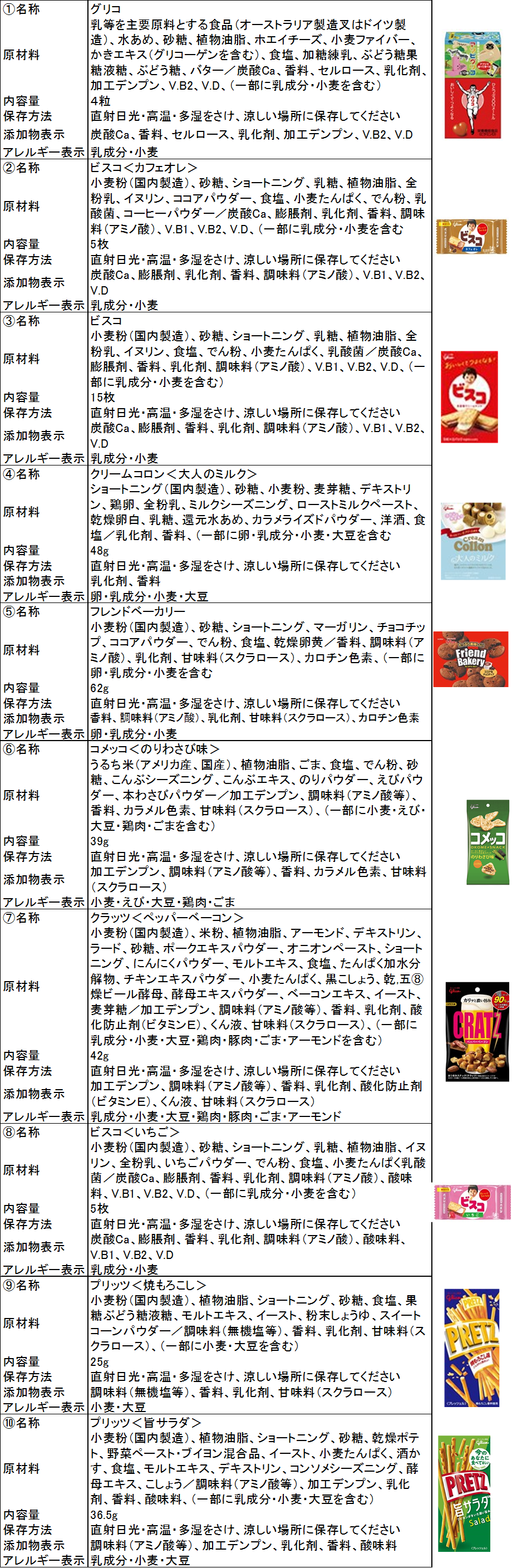 お菓子giftBox 10種類のお菓子 お菓子の中身は以下の通りです。