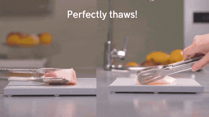 ぶ厚いステーキ肉も、魚の切り身も、本来の美味しさを保ったまま解凍!