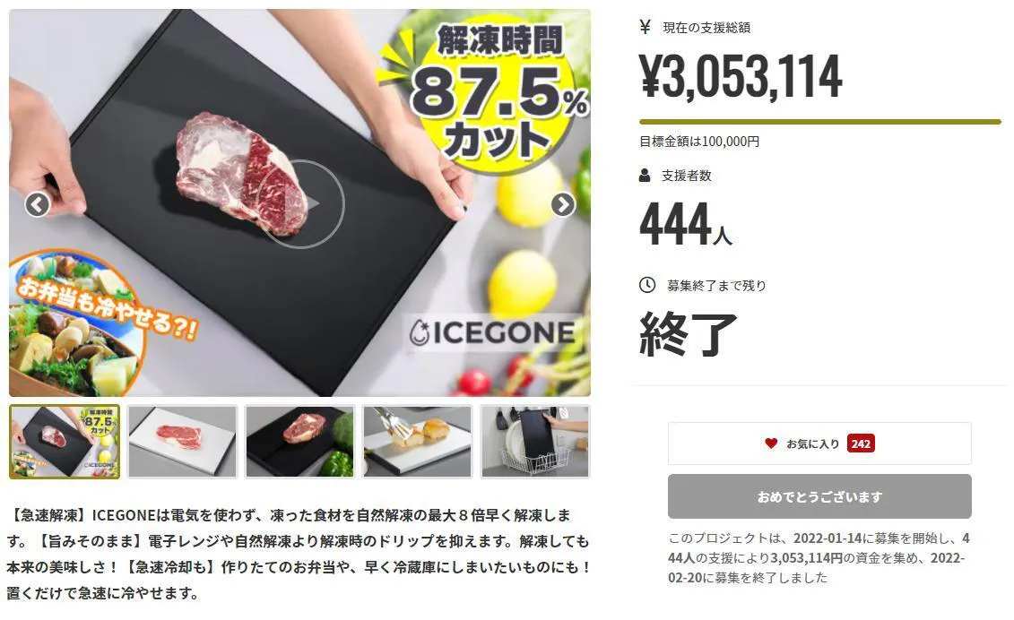 この度は「ICEGONE」へたくさんのご支援を頂き誠にありがとうございました。