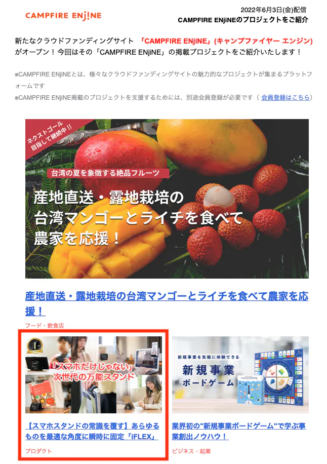 6/3にCAMPFIREニュースレターにて