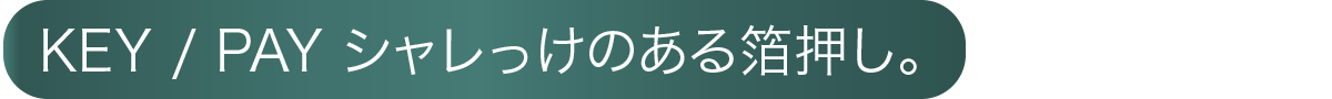 フロントには、このアイテムを表すキーワードである【KEY / PAY】の箔押しを施しております。