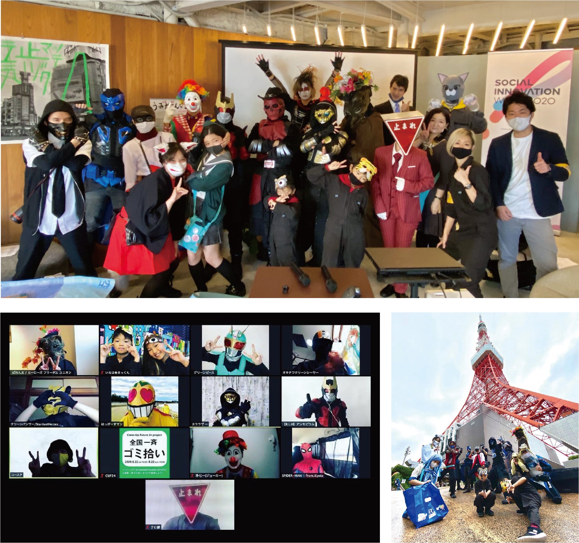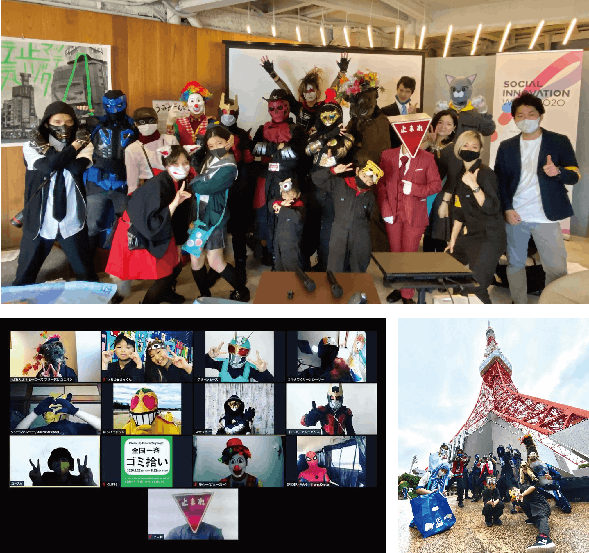一年中、自分で考えたヒーローの仮装をして各地の清掃活動をする社会貢献型ヒーローです。