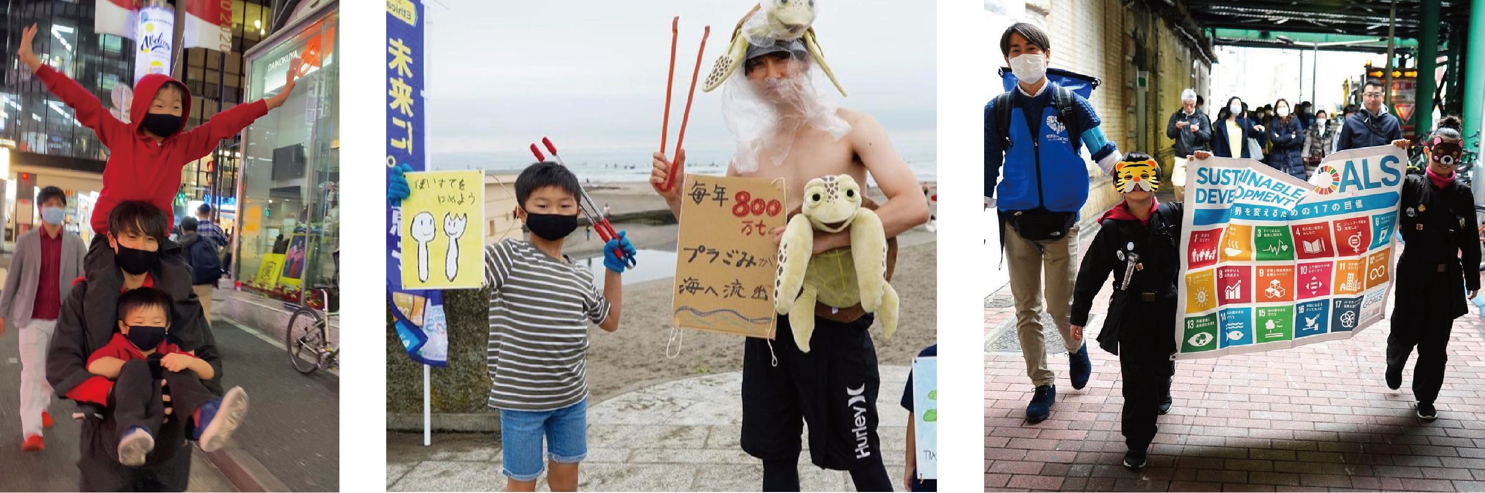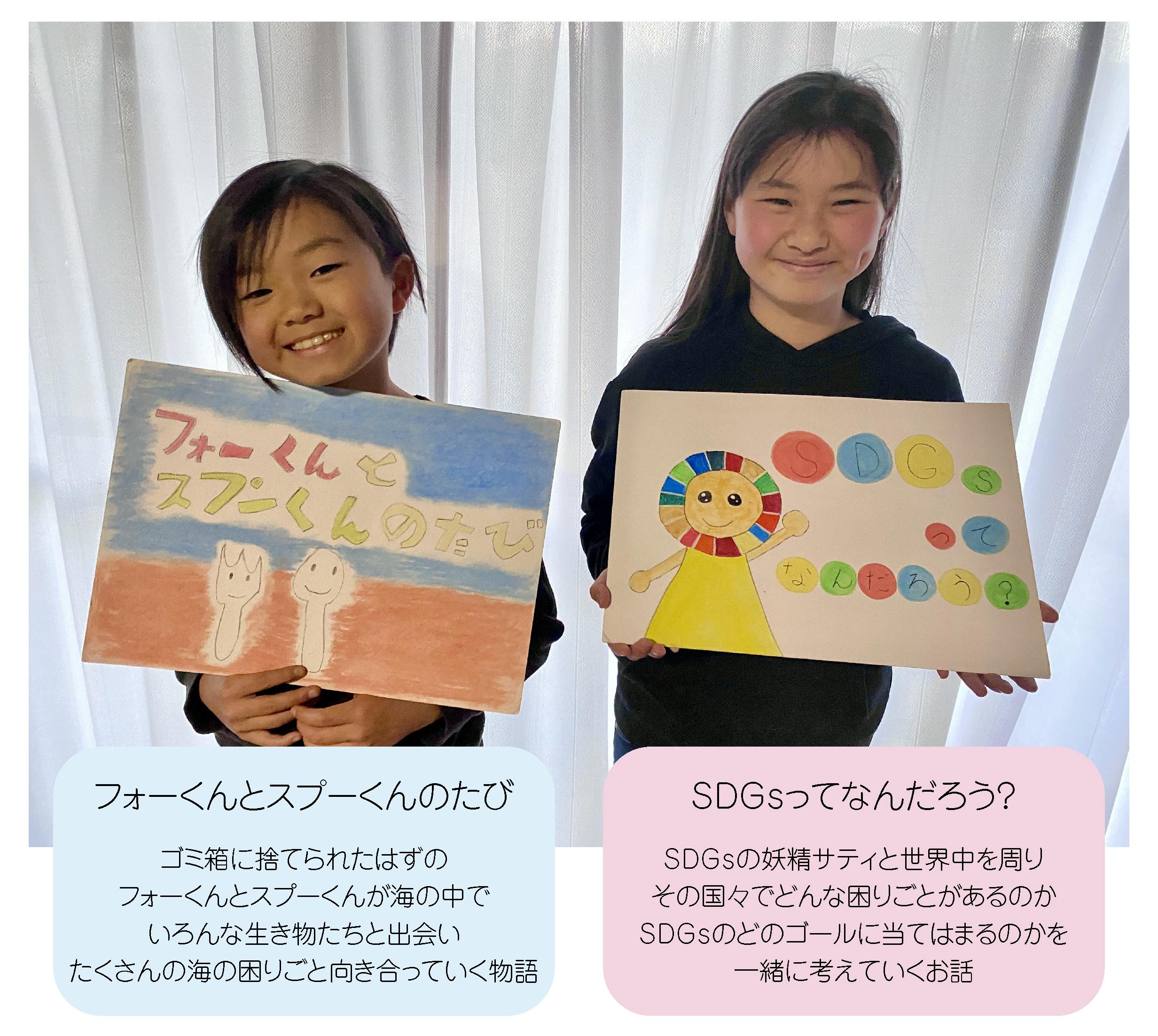 僕たちは、3年前に参加した「海の自由研究フェス」というイベントで、海洋ごみの約8割が街から来ている事を知って、SDGsと出会い、地球の現状や海の困りごとを知り、その事をたくさんの人に伝えたくて、渋谷区SDGs協会のキッズアンバサダーになりました。