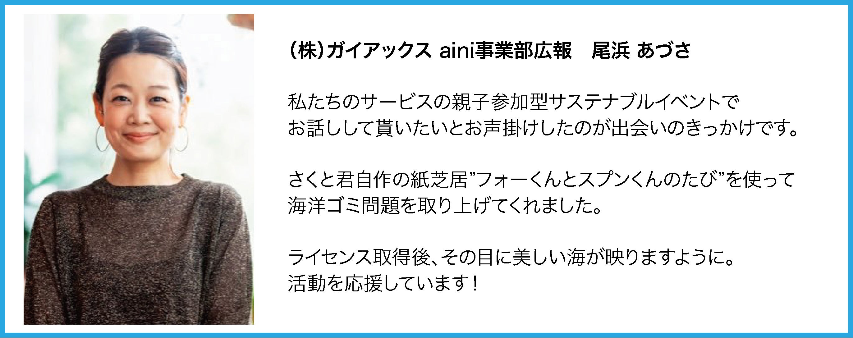 その為には、ネットの情報だけじゃなく、実際に海に入り、自分の目で見た事を、たくさんの人に伝えて、興味を持ってもらって、みんながジブンゴトになってもらう事が、今の僕たちにできる事だと思っています。
