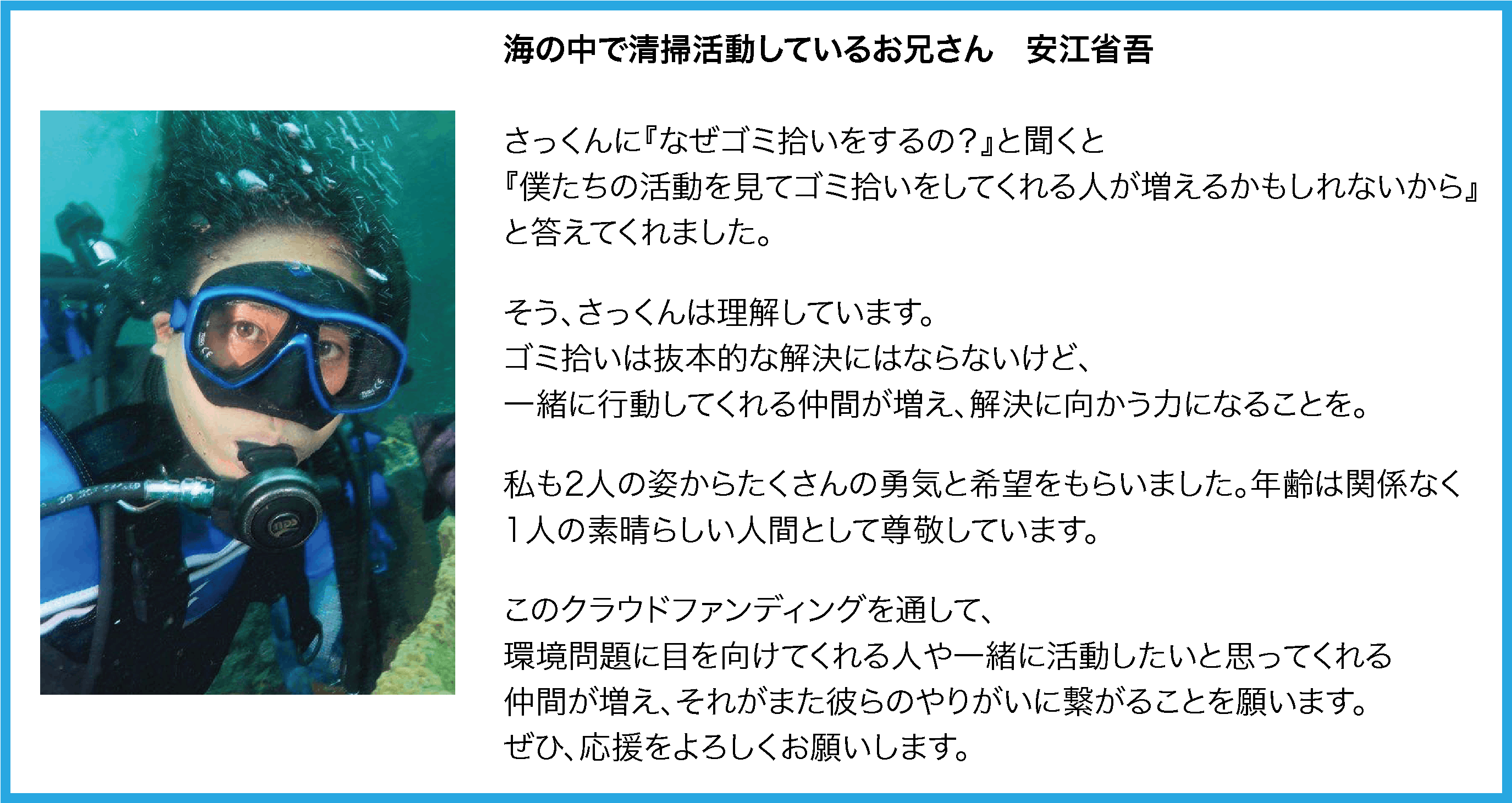 清掃活動を通して、僕たちは「海の中の清掃活動」をしているお兄さんに出会いました。
