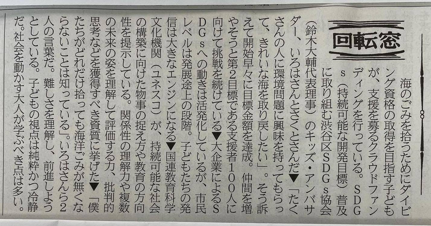 報告が遅くなってしまいましたが、先日、日刊建設工業新聞のコラム回転窓に、クラファンの事が掲載されていました。