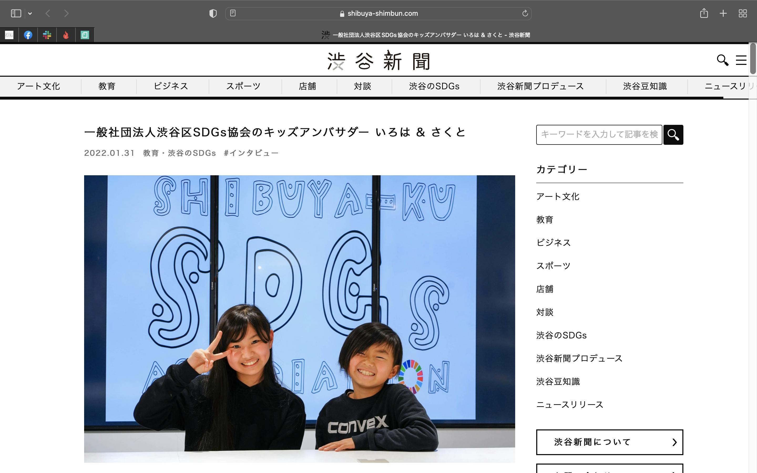 一般社団法人渋谷区SDGs協会 キッズアンバサダー さくと