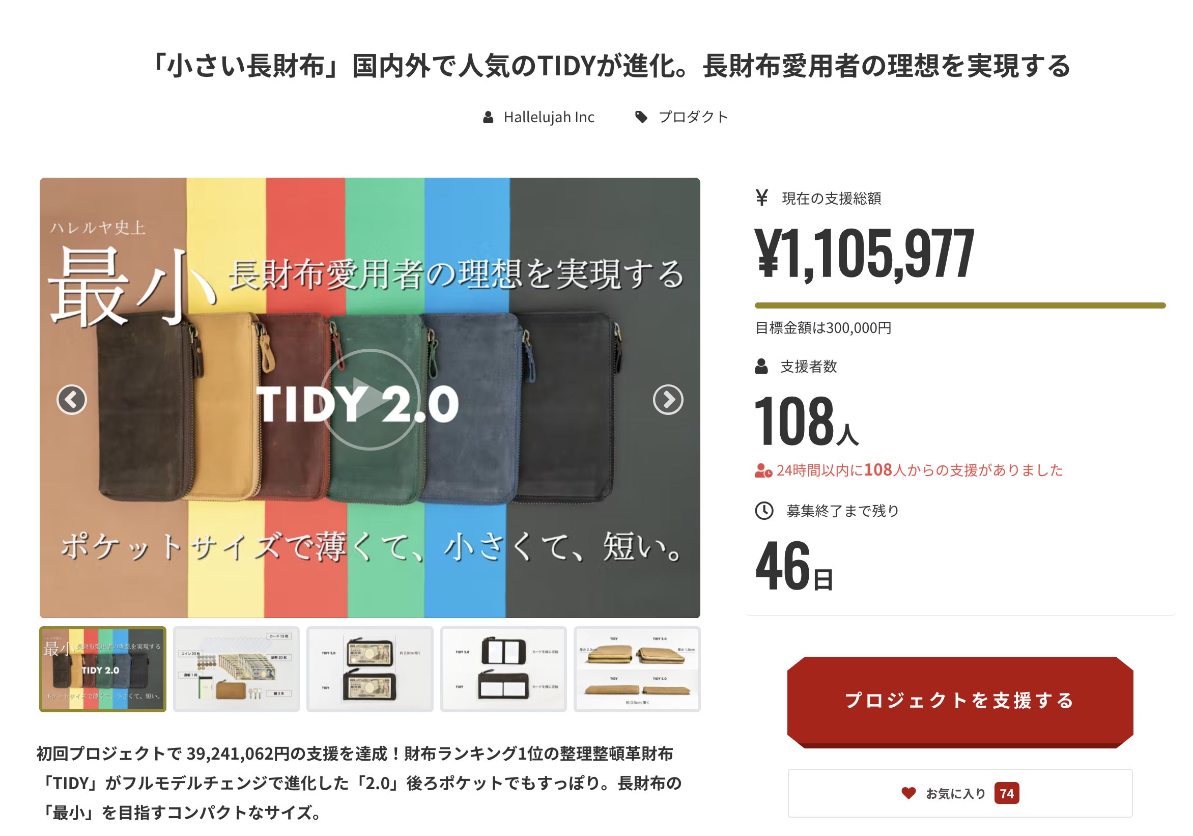前回のプロジェクトで買い逃したというお声も聞いておりましたので、今回のプロジェクトを通して、よりたくさんの皆様に「TIDY2.0」をお届けできることを嬉しく思っております。