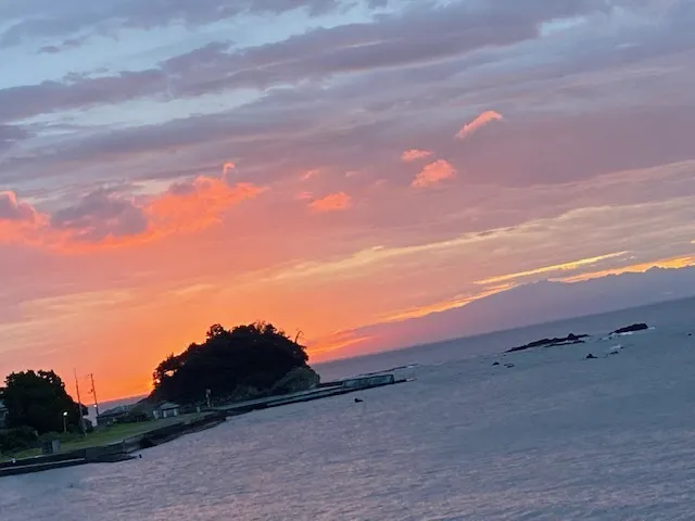 目の前が海、伊豆七島が眺められ、水平線から昇る朝日が見える場所です。