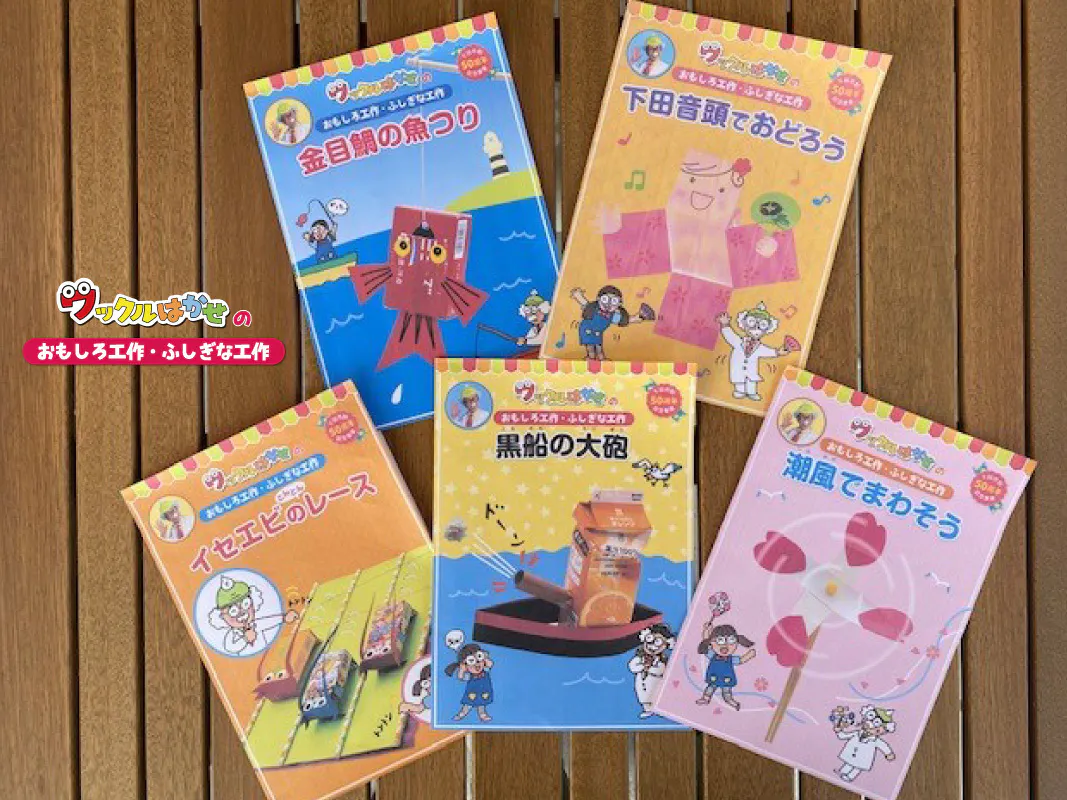 「ワックルはかせ」プロジェクトは、2022年1月14日、下田市制50周年記念式典に併せて、下田市役所・(一社)下田観光協会・下田商工会議所・下田市のセブンイレブン7店舗で知育工作図解小冊子を無料で配布するプロジェクトです。この知育工作図解小冊子は、何処の家庭にでもあるような材料を使い、楽しめる知育工作を基本として考案されています。