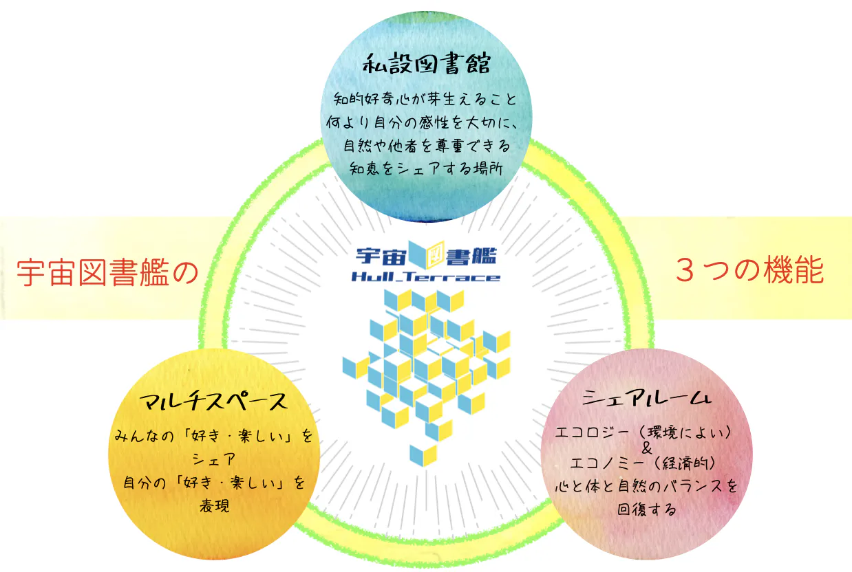 わたしは「宇宙図書艦Hull_Terrace」で、「豊かさをぐるぐるめぐらせ」て、「それぞれの幸せ」が少しずつ増えていくことを願っています。