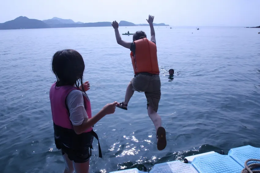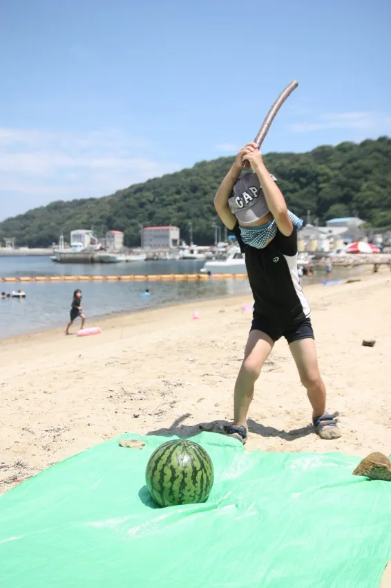 ↑すいか割りや海に飛び込むこともあれば、海をぼーっと眺めることも。波音を聞きながらお昼寝するのも、島の楽しみ方!