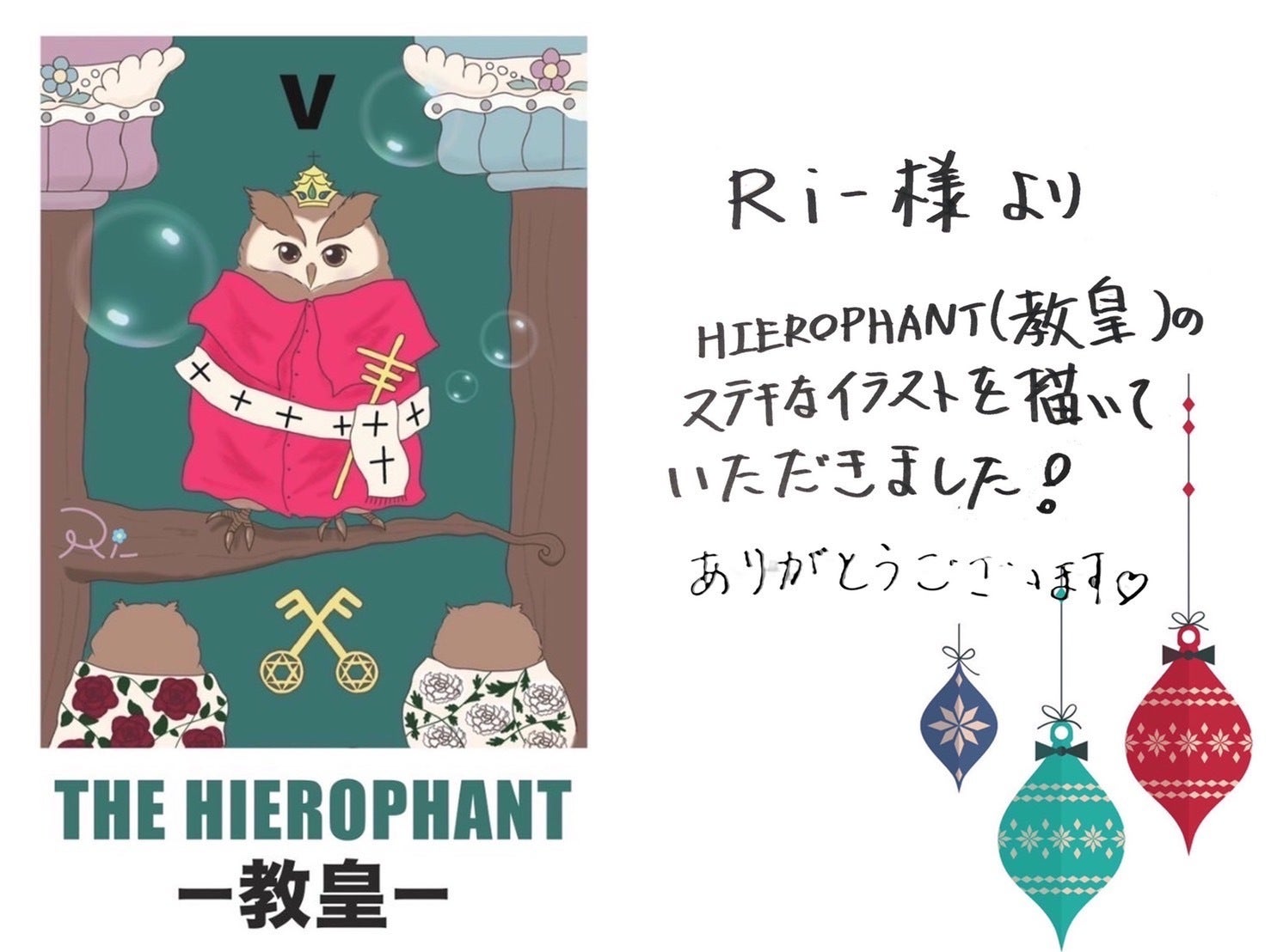 22枚のカードの中で最後の一枚に残っていた教皇のカードをデザインできたことをとても嬉しく思います!ありがとうございました。
