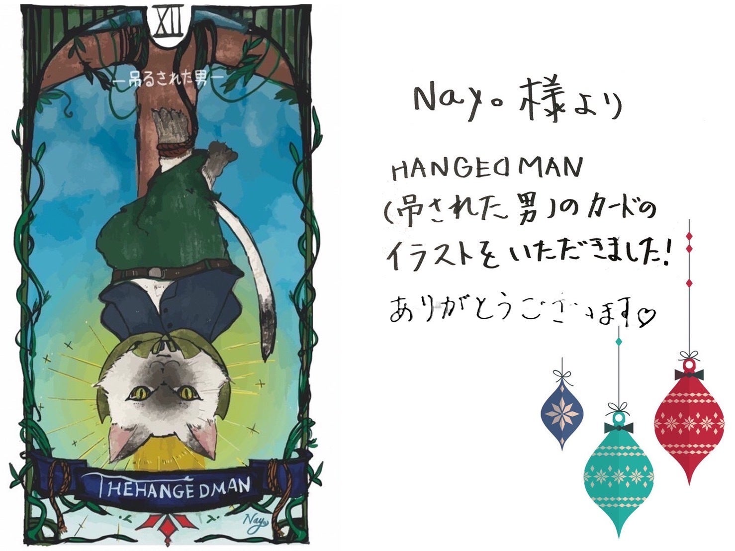 ハングドマンを猫にしたのは愛くるしくも素っ気なさを出せるためです、こだわりは逆位置にした時にニヒルに笑うところですね。