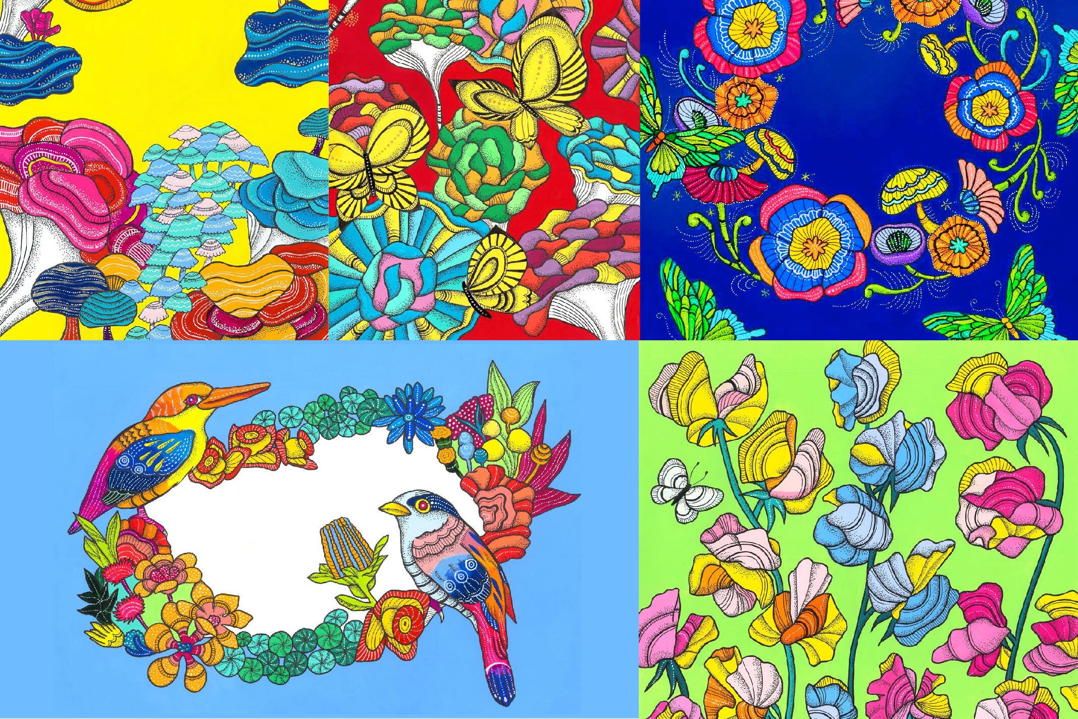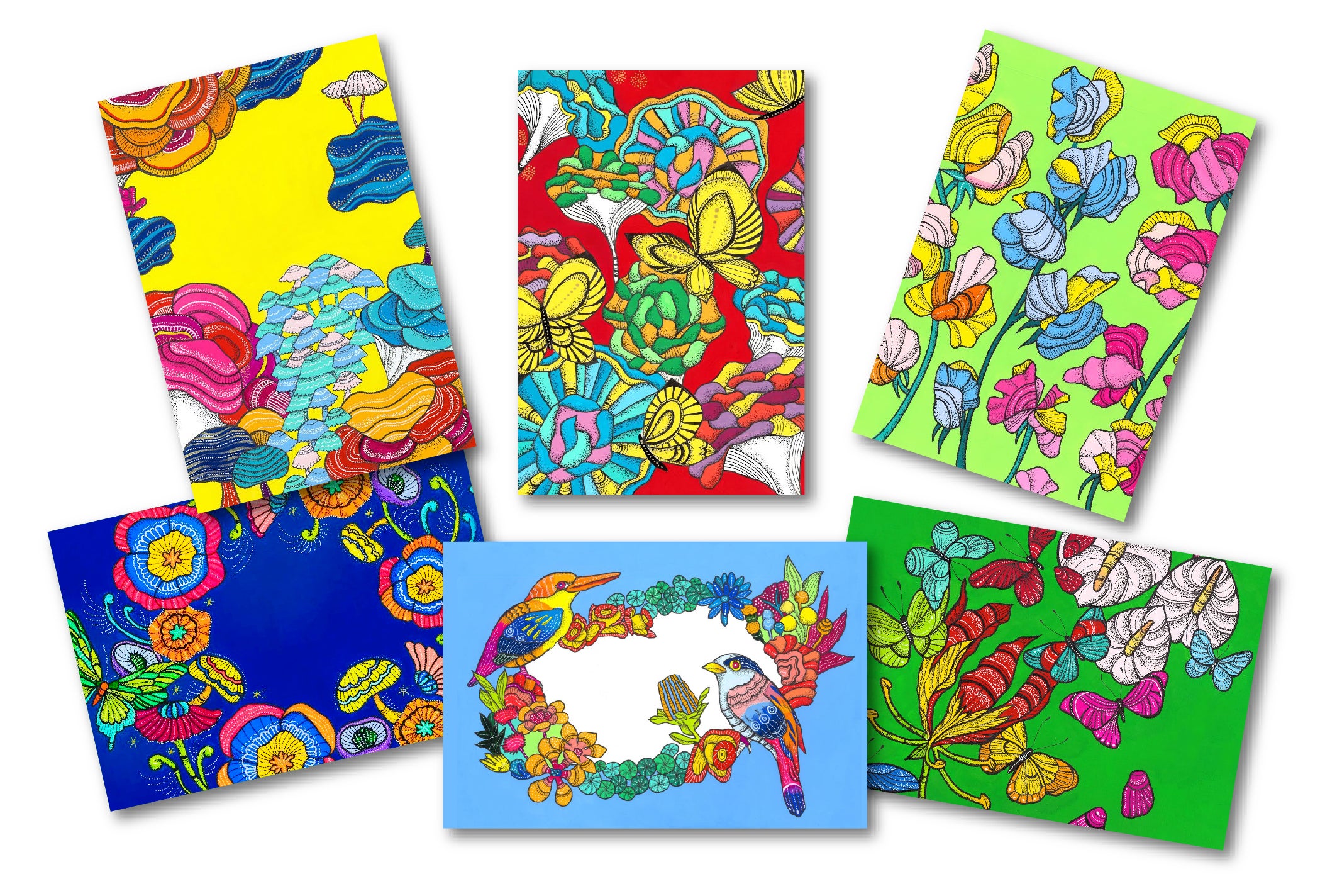 6枚のビビッドな絵をポストカードにして