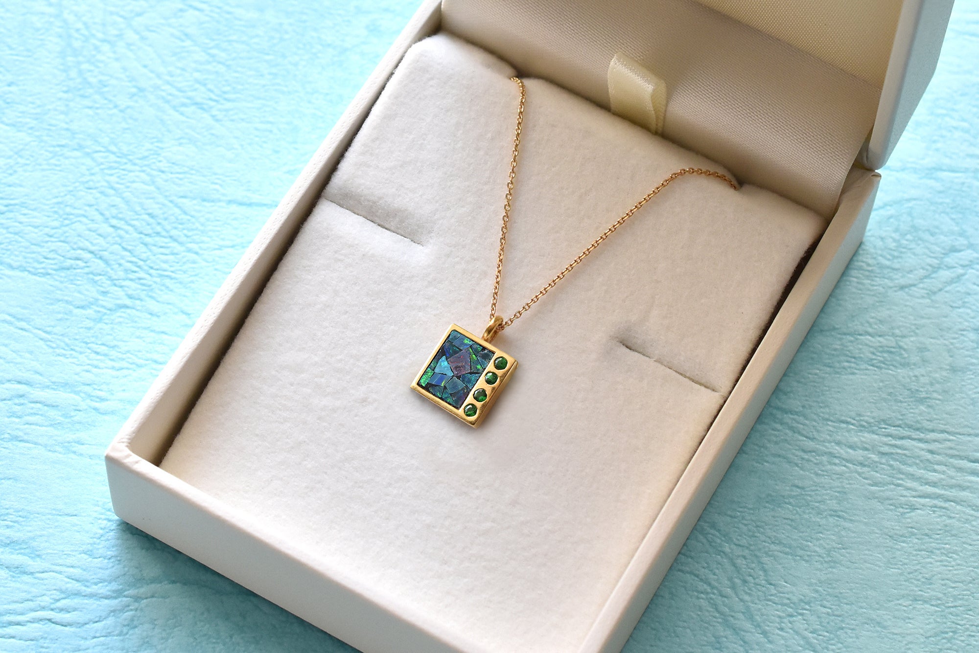 モザイクオパールとグリーンガーネットの色鮮やかな