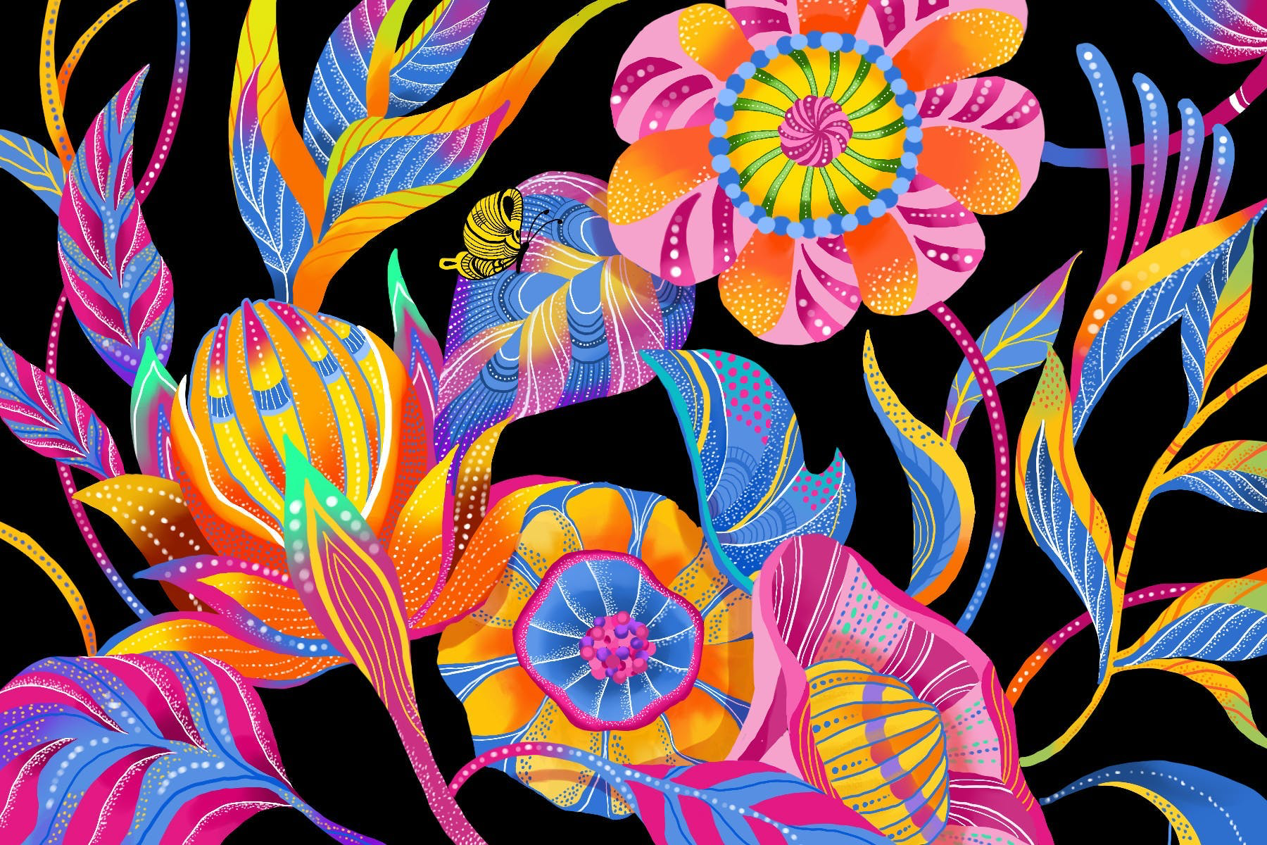 自然のモチーフをアクリルガッシュでビビッドに描いておりました。