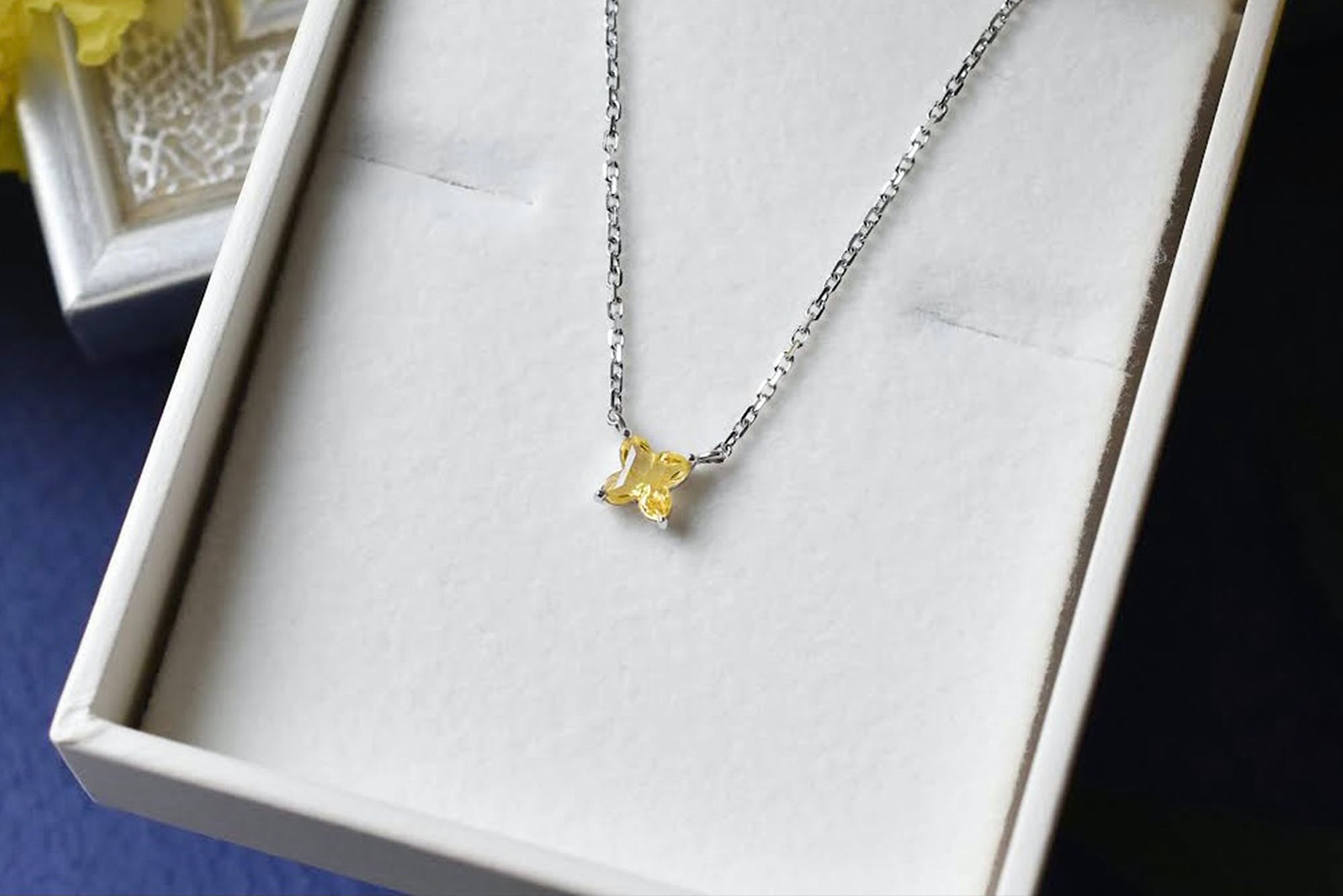 ■フラワーカット イエローサファイア プラチナネックレス 85,000円