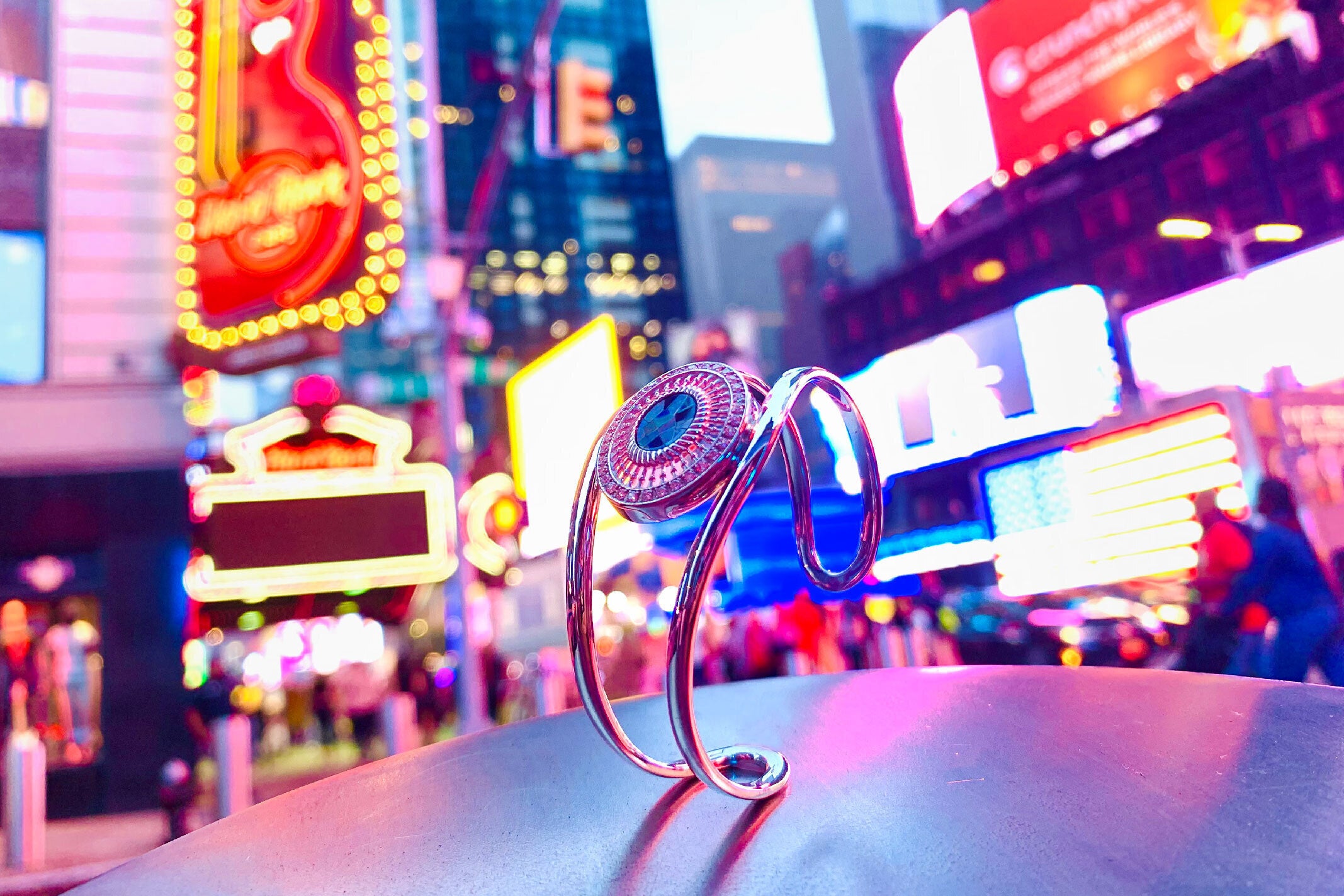 タイムズスクエアの前で、ジュエリーの写真を撮影したりしました。