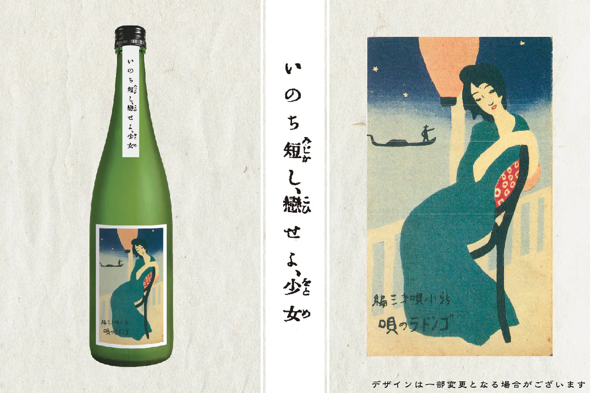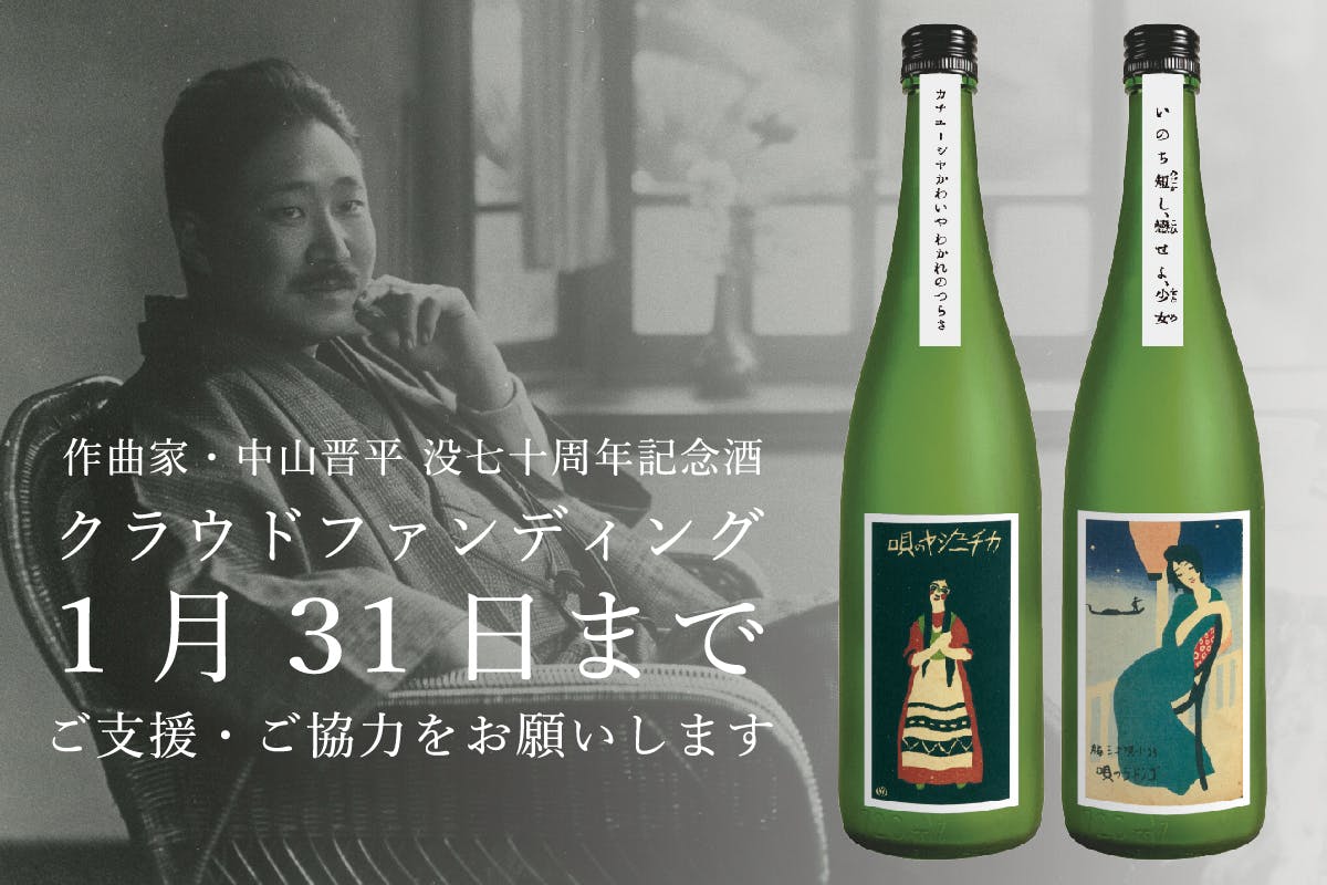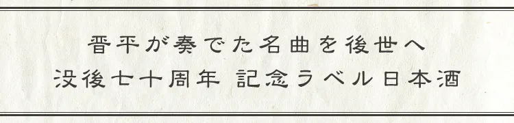 晋平の功績を後世へ語り継ぐため、没後70年の節目に合わせ、当時の流行歌であった二作をモチーフとした日本酒を製造します。ラベルには、大正ロマンを代表する画家・竹久夢二による楽譜装幀画を使用。日本酒の華やかな香りと柔らかな味わいを、唄の旋律に耳を傾けながら、五感でお楽しみください。