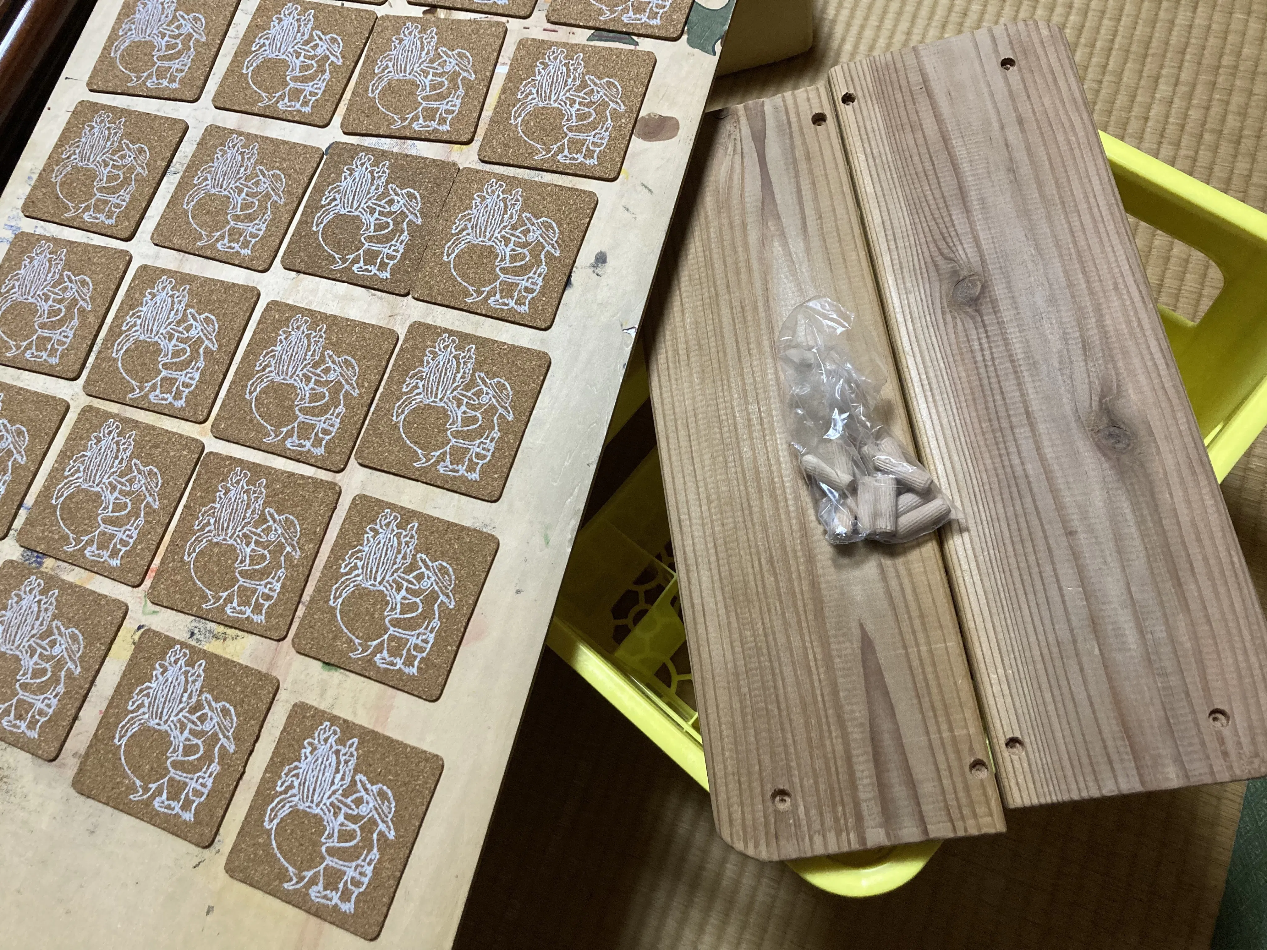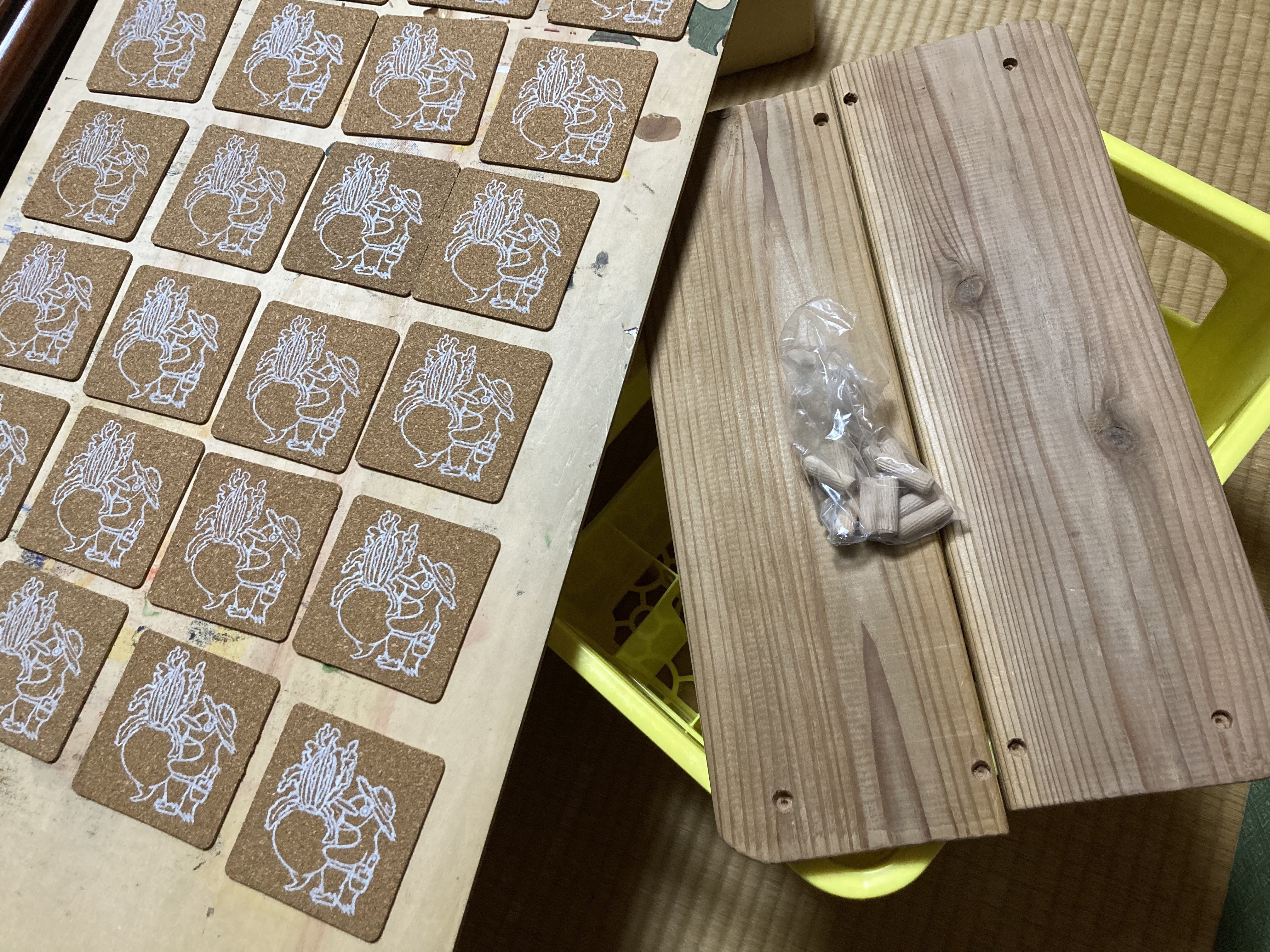 今日も製作。ビアグラスもなんとか区切りが良い所まで仕上がり、ふと…コースターまだやん!!ビールケースの板加工にダボがいるやん!!