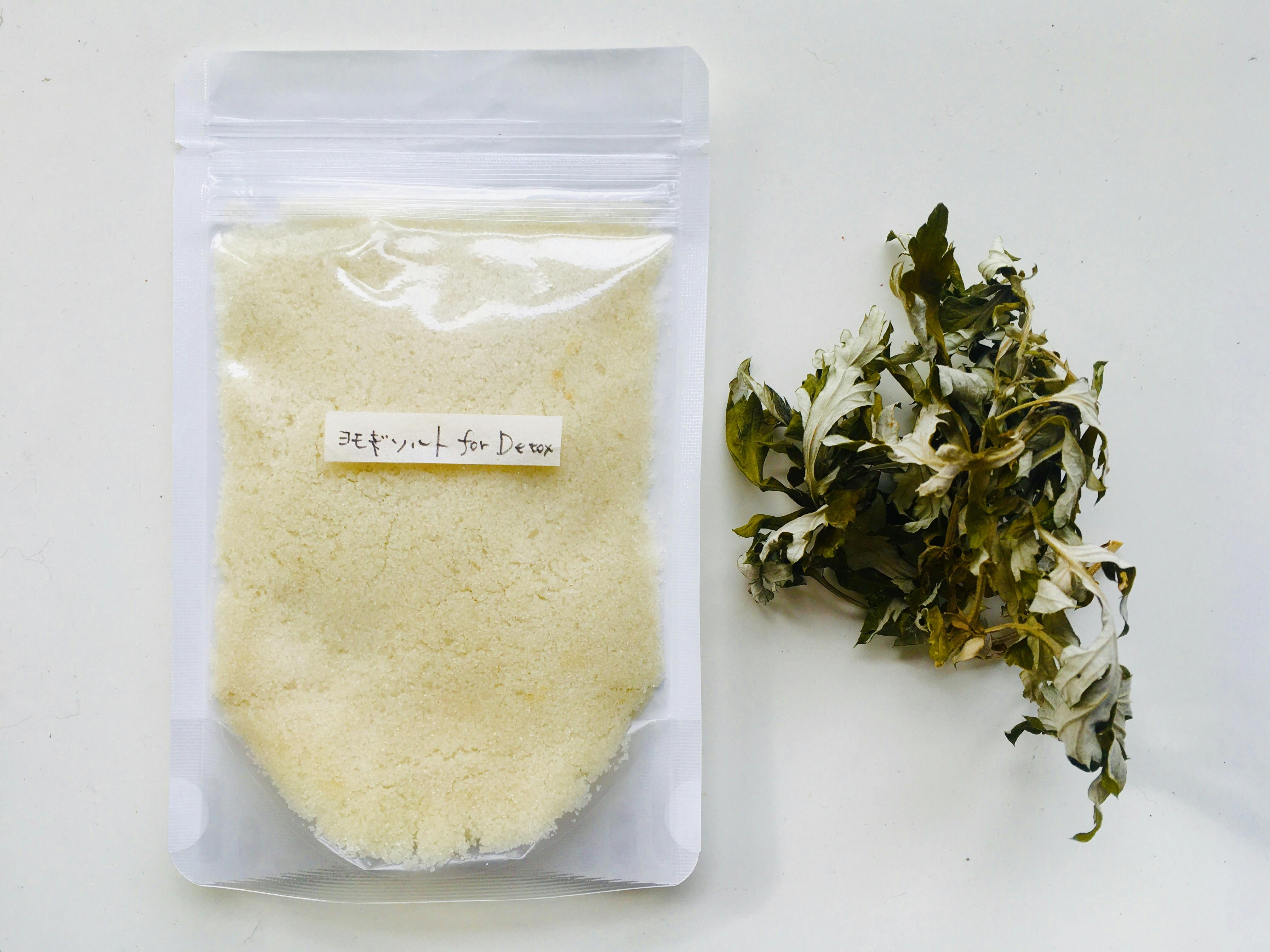 こういった様々な方法で私たちを助けてくれるヨモギの力を、最高の形で活かすプロダクトとして、ヨモギエキスを特殊な工程で塩に定着させた〈ヨモギ デトックスソルト〉を開発しました。