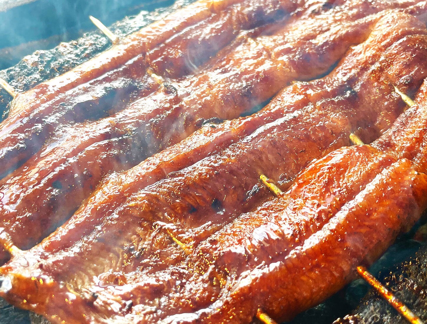 現代風の電気やガスではなく、昔ながらの備長炭火と秘伝のタレで焼き上げる香り豊かなふっくら香ばしい鰻となっております。