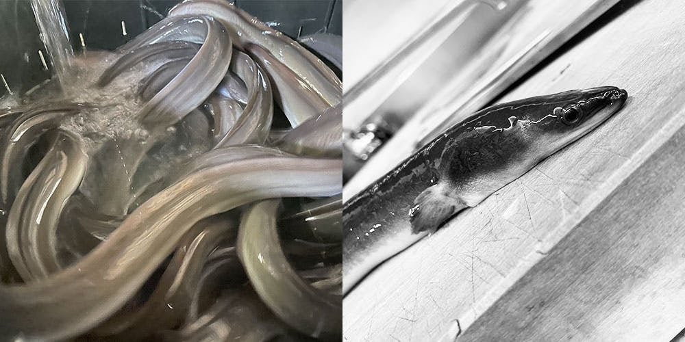 空輸された活鰻を一つ一つ職人が丁寧に捌きます
