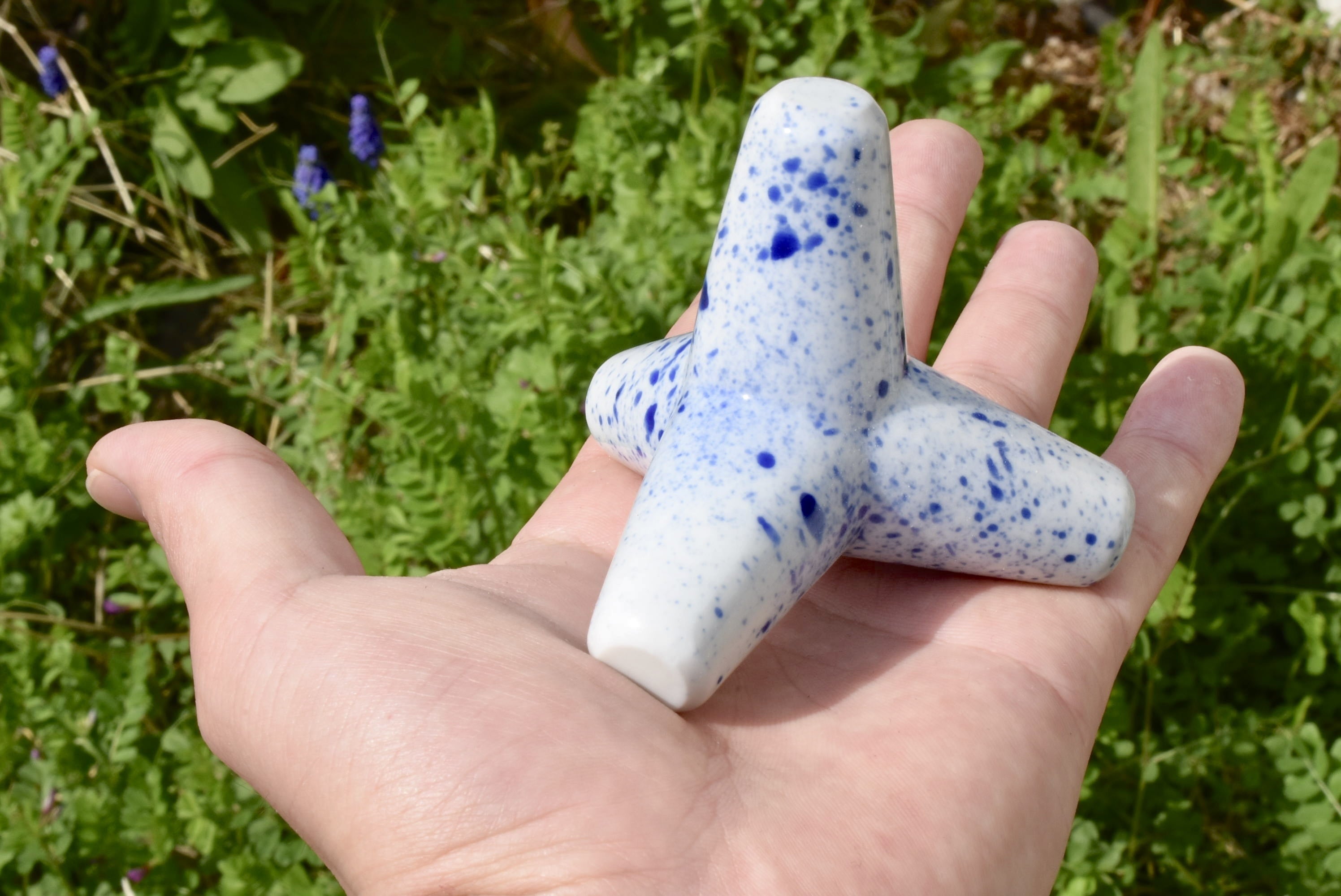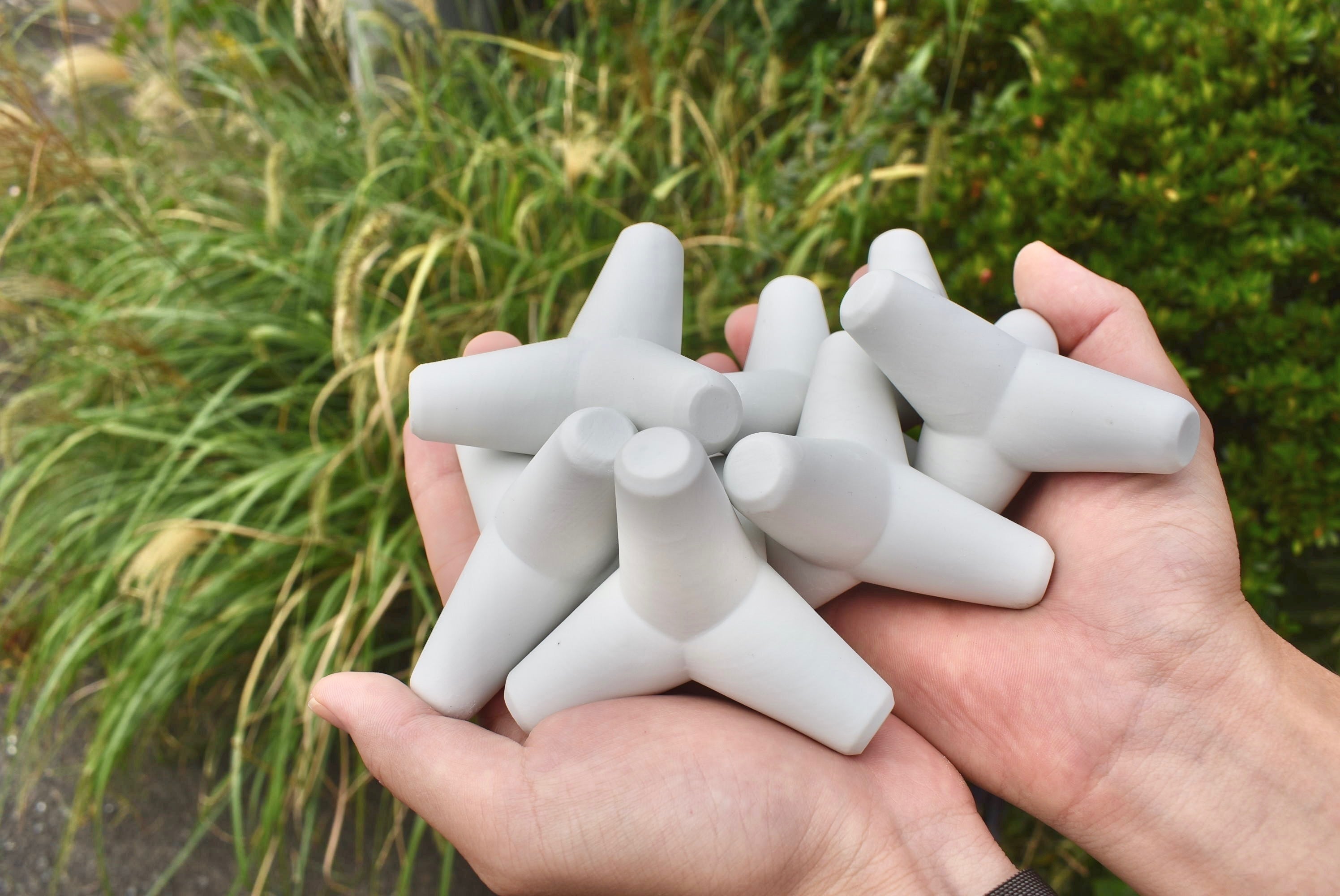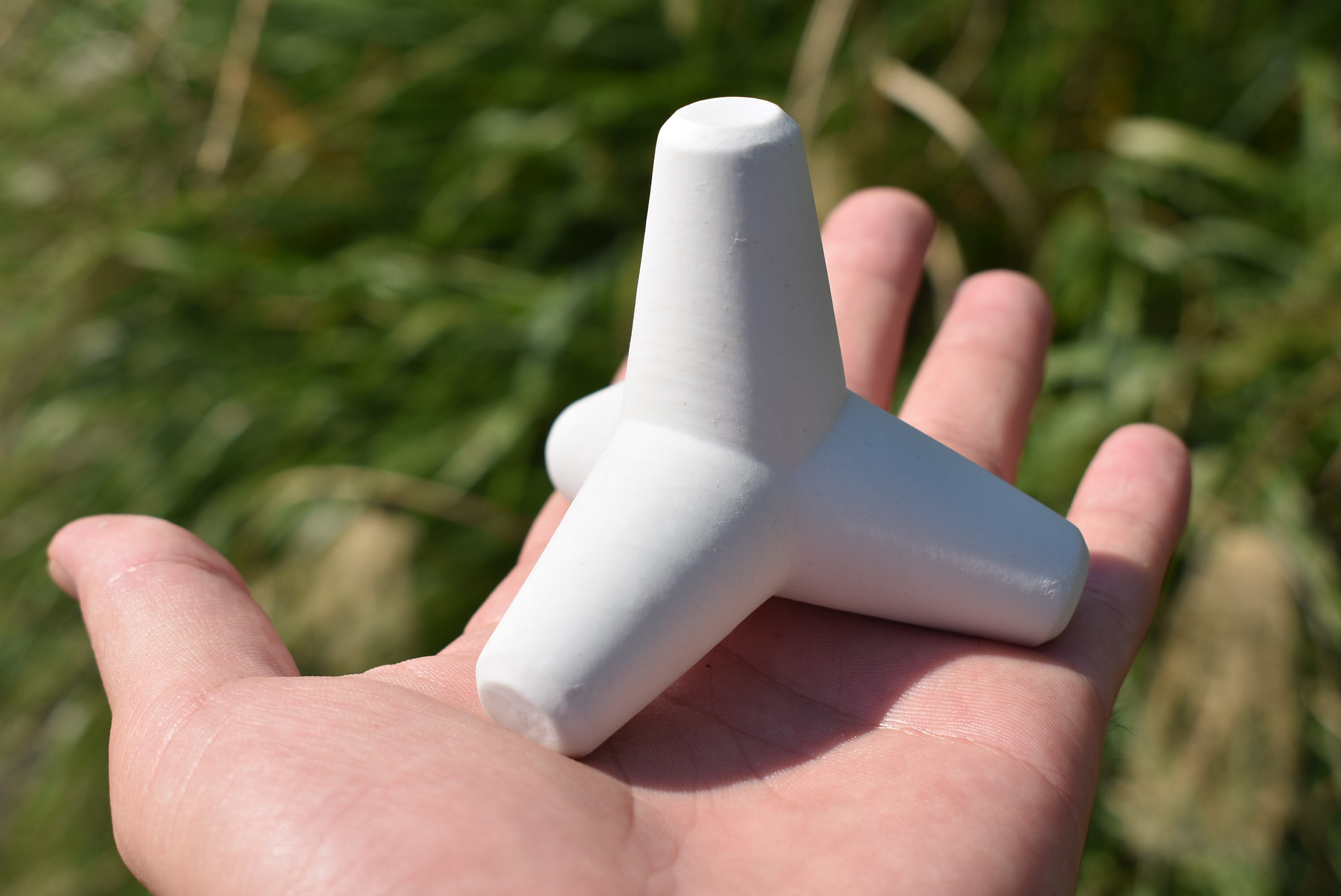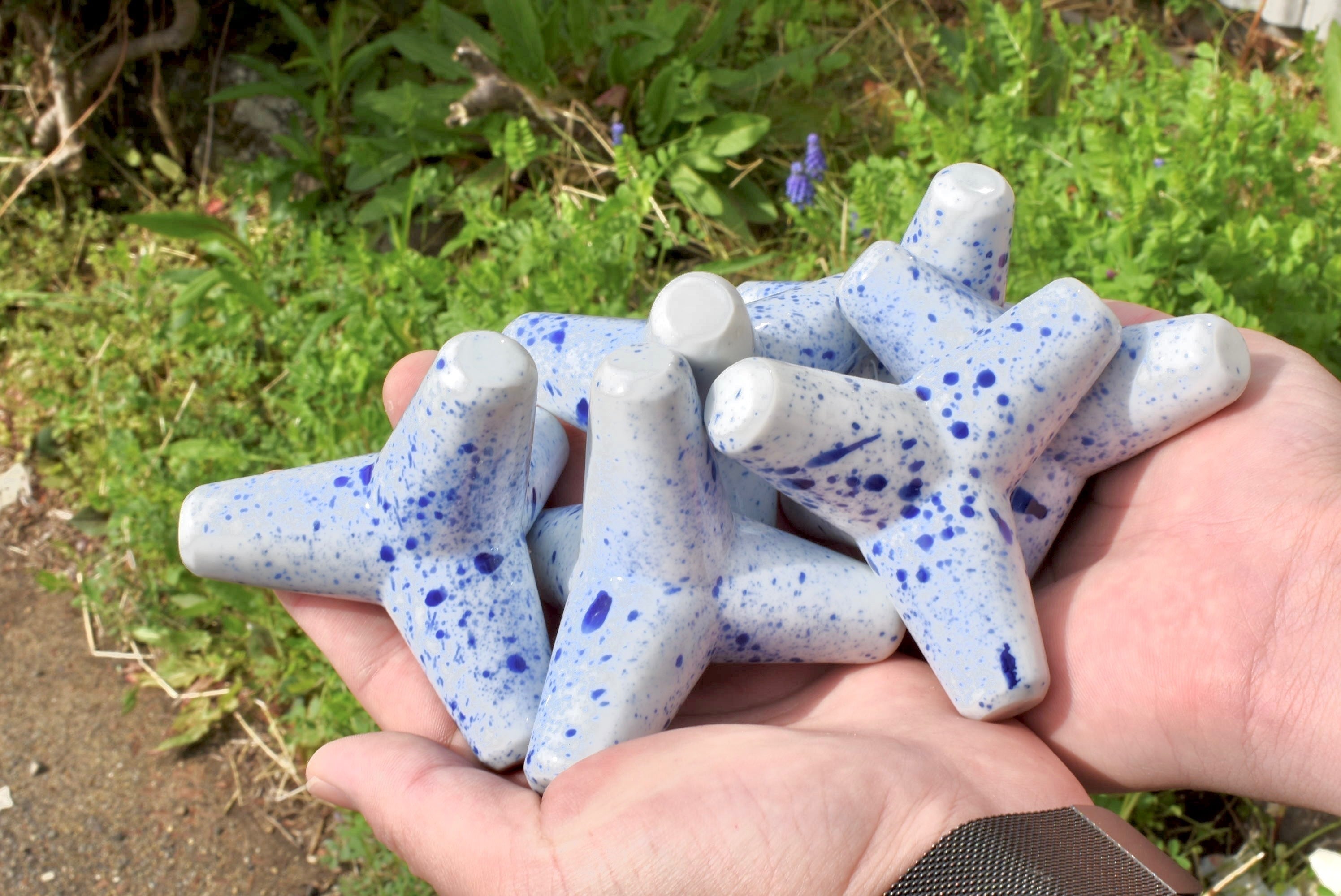 焼物の知識0で焼物業界に飛び込んだ惠美須は、有田焼は器としての可能性だけではないと感じ、器以外で有田焼を身近に感じていただけるものはないかと研究を始めました。その結果、誰もが一度は目にしたことがありながら手にしたことがない、テトラポッド型の有田焼を思いつきました。置いてもかわいいけど何かに使えそうなその形状は、なんだかわからないけど欲しくなる...有田焼の新しい可能性を見出し、100人に聞いて100人がほしいと答えたArita Tetraは親峰武堅を復活させるきっかけになり、自信を持ってご提供できる商品です。