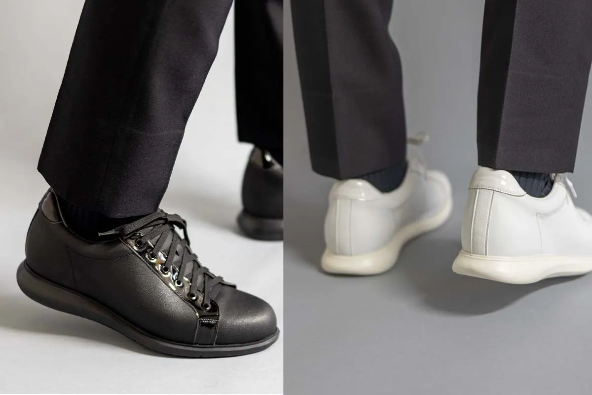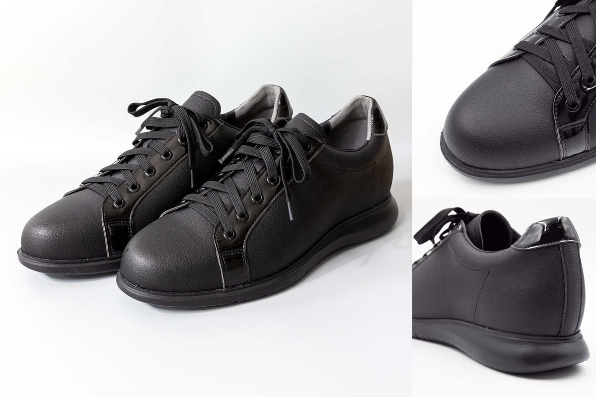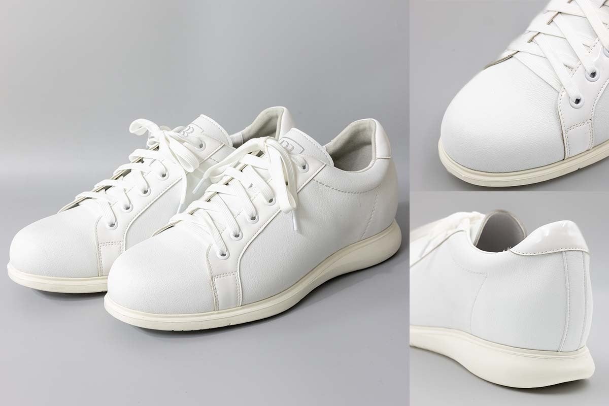 さらに、アッパーには雨や汚れに強く、ストレッチ機能のついた高級人工皮革を使用。インソールは抗菌・防臭機能付きで靴の中は常に清潔を保ちます。また、弾力性の高い衝撃吸収に優れたヨーロピアンデザインのアウトソールを採用しと、跳ねるような履き心地を実現。でさらには4.5cmのヒールで長身・脚長効果を盛り込みました。デザインはマットな風合いの中にワンポイントでエナメルを使用、シンプルながらも洗練された印象に。ボディバランスCOOLスニーカーは、これまでのスニーカーにない履き心地とデザインが融合した1足に仕上がりました。