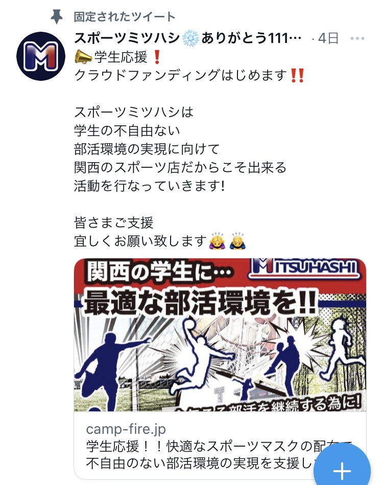 この度は、スポーツミツハシのグラウンドファンデイングをご覧いただきありがとうございます。また既にご支援頂いた皆様本当にありがとうございます!