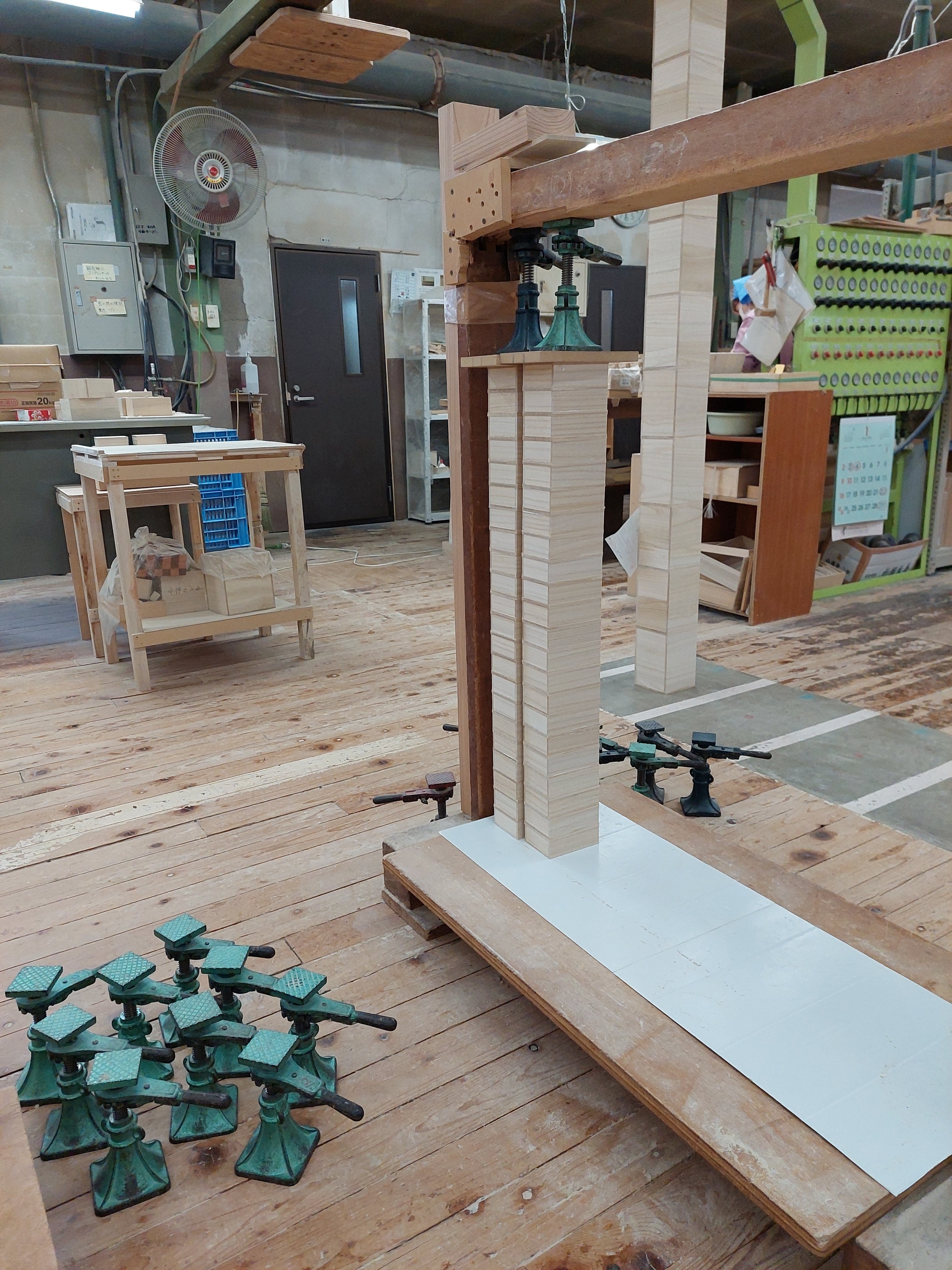 ちょうど、私が発注したいものと同じ型の桐箱を糊付していました。昔ながらの製法で、しっかりと押さえています。
