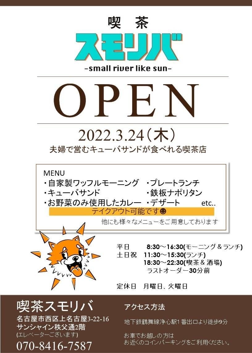 喫茶スモリバOPENのお知らせ用チラシが完成致しました。