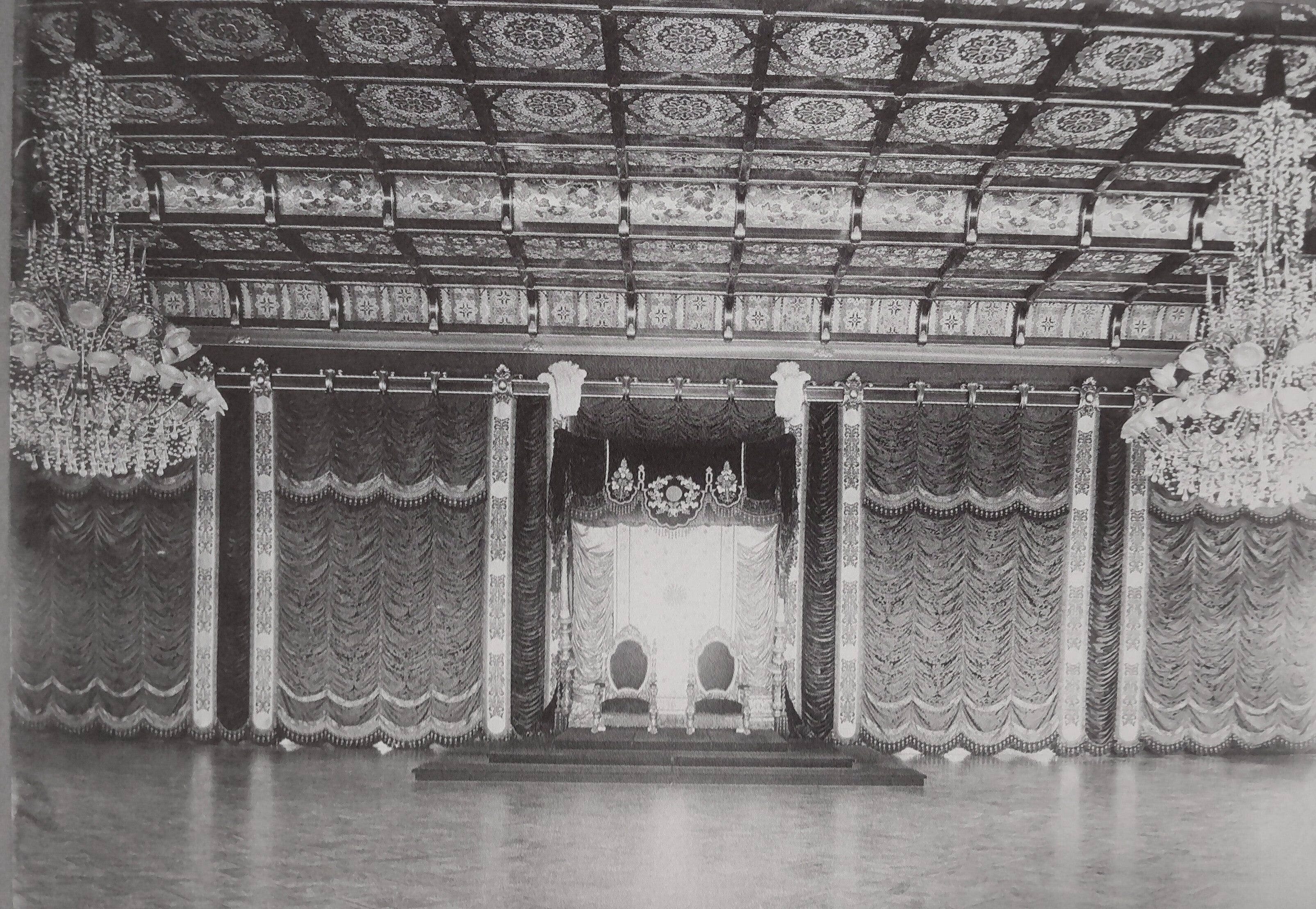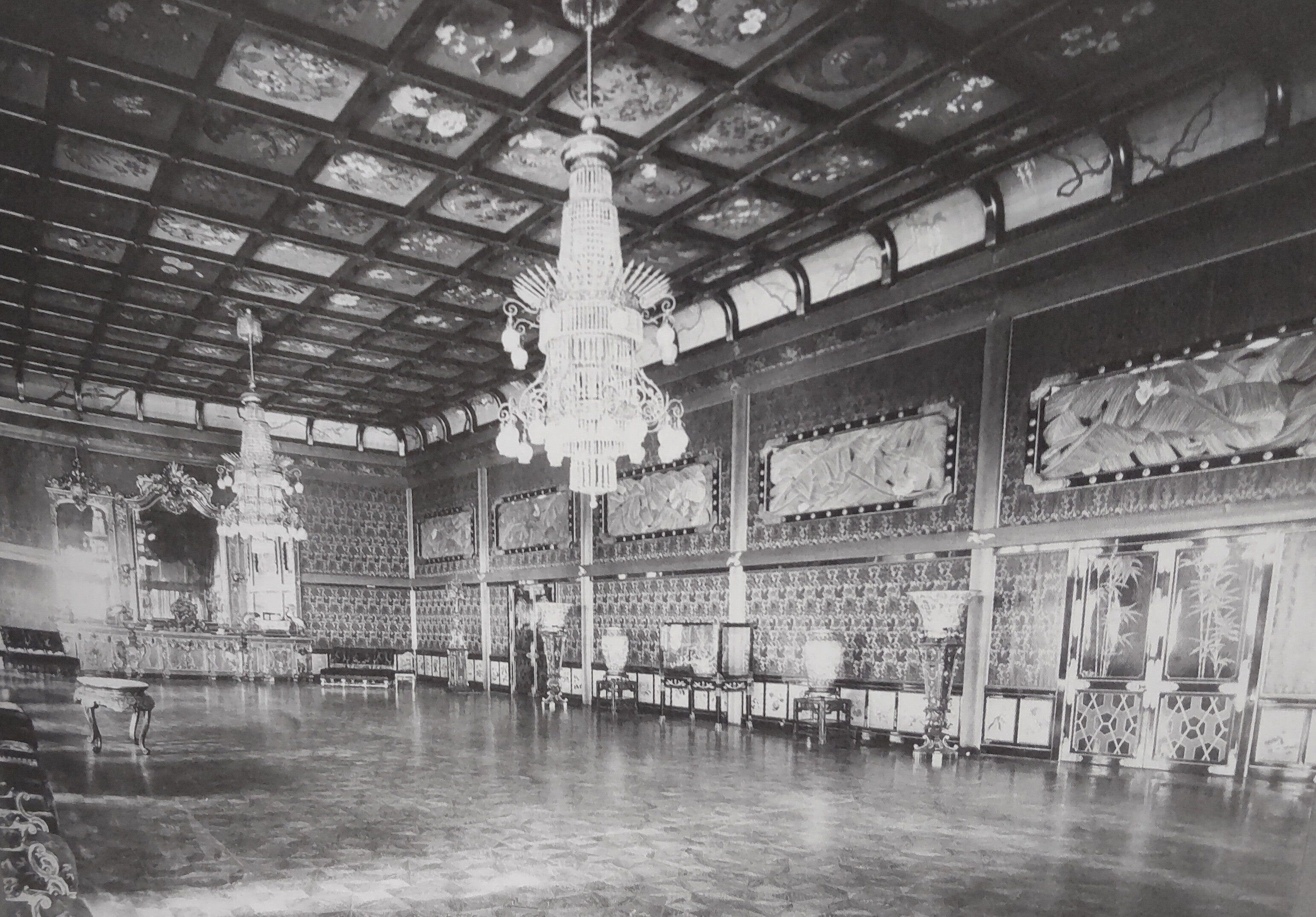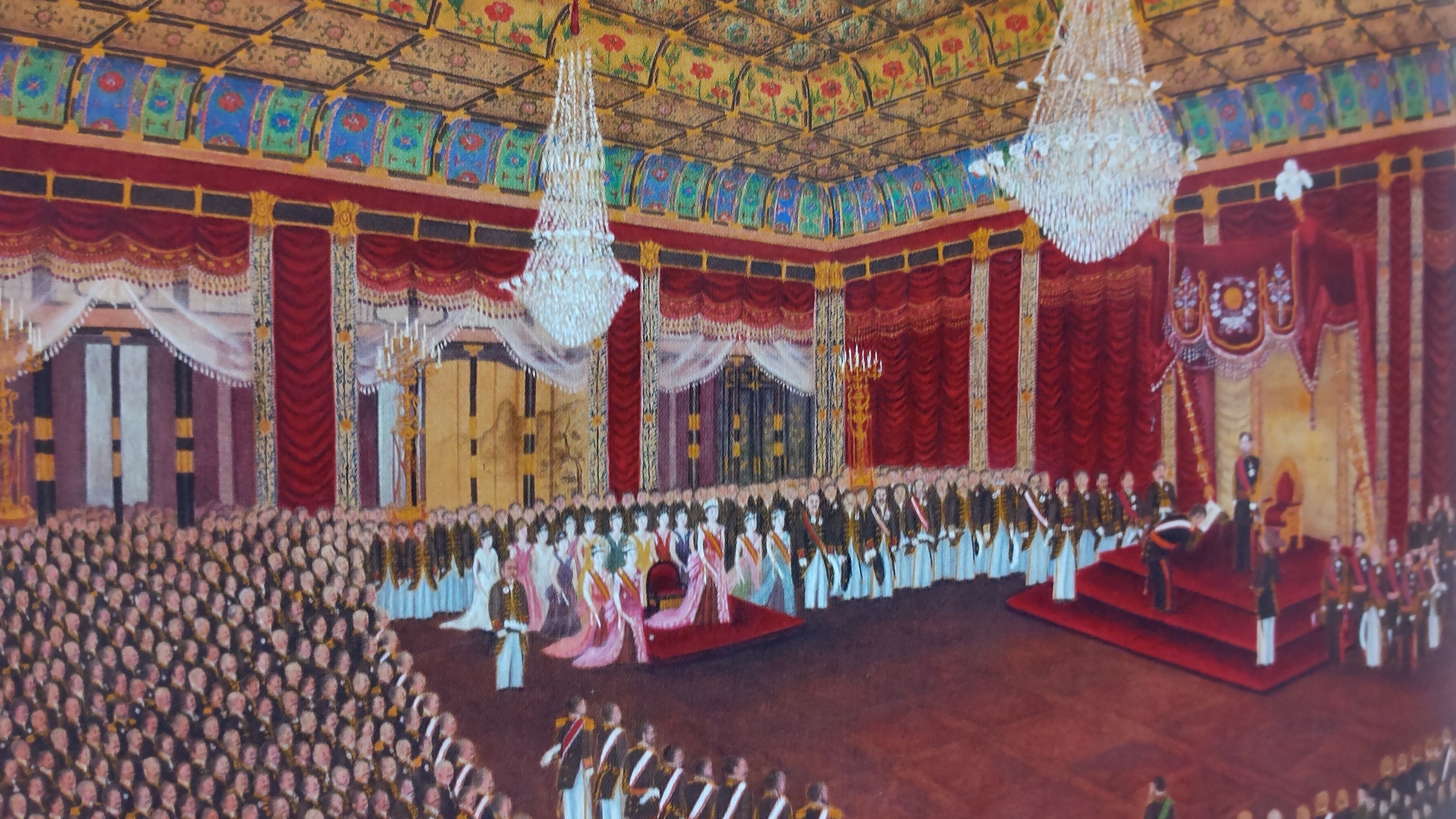 明治宮殿では、1906年にイギリス王室から明治天皇にガーター勲章が授与されるなど、迎賓館を兼ねた皇居でした。しかし太平洋戦争の空襲で焼失してしまい、現在その面影は失われています。今回のプロジェクトではその明治宮殿で最も重要な建物である正殿を1分間のCG動画でCG復元し、それを一般に公開して多くの人々に見ていただきたいと思います。正殿は図面や古写真など、復元資料が比較的残されており、ほぼ正確なCG復元が可能です。今回のプロジェクトを始めるにあたり、宮内庁の方から、宮内庁宮内公文書館所蔵の資料と以下の写真をこの場で掲載する許可と、クラウドファンディングでその資金を集めて明治宮殿をCG復元し一般公開する許可をいただきました。