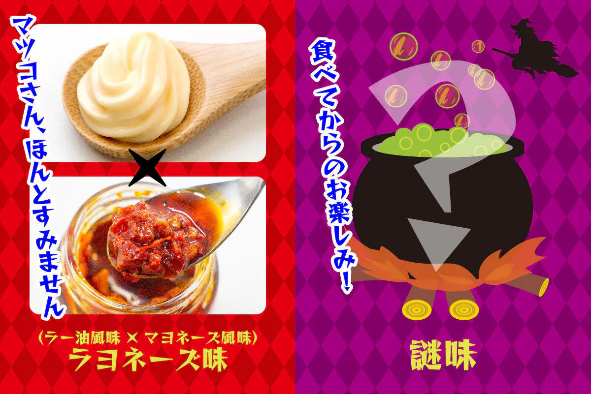 ラヨネーズ®味と同じく、私が研究開発した新しい風味のものになっていますので、ご飯にかけて、食べてみて何の味か当ててみてください。