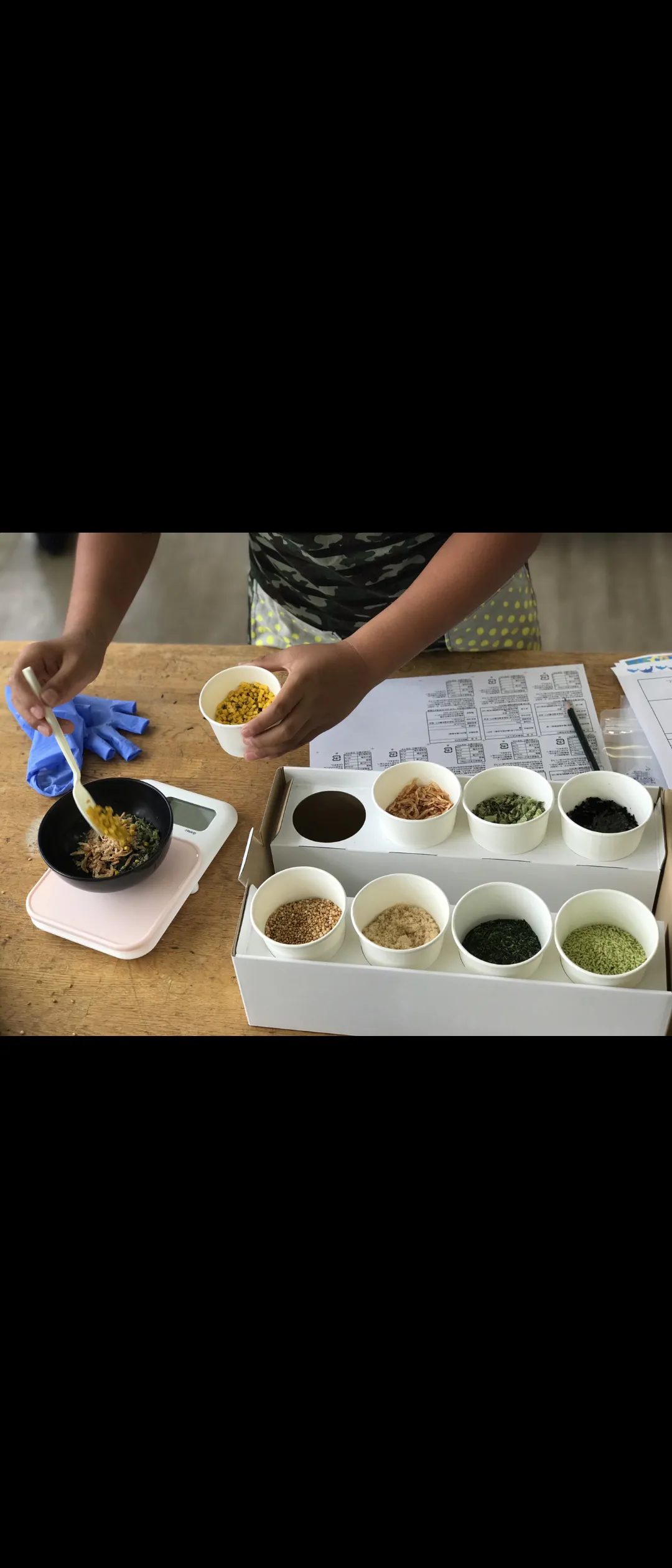 海の環境を学びながら、好みの具材を自分たちで選んで合計㌘を設定して
