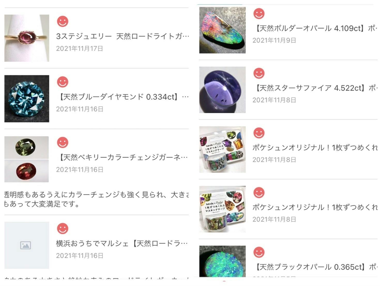 他方、コロナ禍の状況もありイベントに足を運べないお客様も多かった2021年、少しでもイベントの現場を感じていただくべくInstagramにて『おうちでマルシェ』などの生中継Live配信やオンラインショップBASEでの販売にも工夫を凝らして注力しました。オンラインショップではイベント同様1,000円から宝石ルースを販売し、初めて宝石ルースを買う人にも買いやすい価格帯にしています。またお客様の要望にもできる限りお応えできるようお客様の声を常に意識し、商品化に繋げております。
