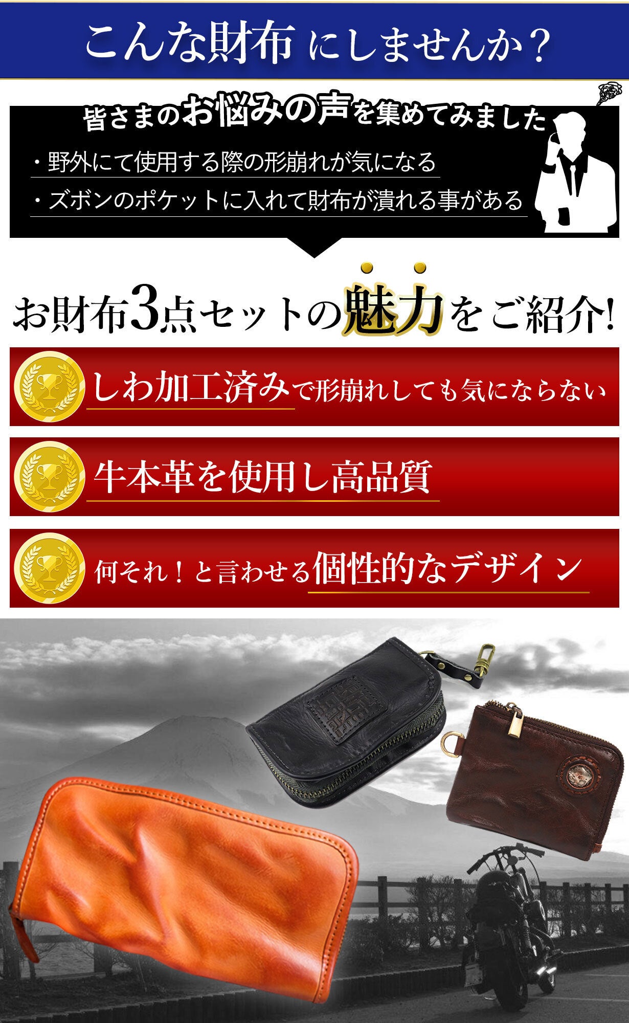 長財布、キーケース、小銭入れの3点セット(指定色での組み合わせ)