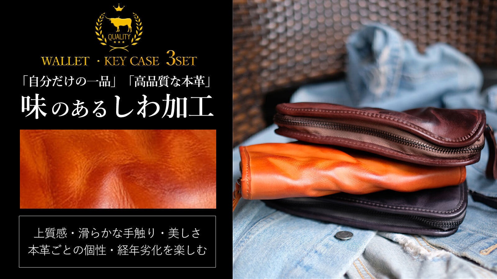 長財布、キーケース、小銭入れの3点セット(指定色での組み合わせ)