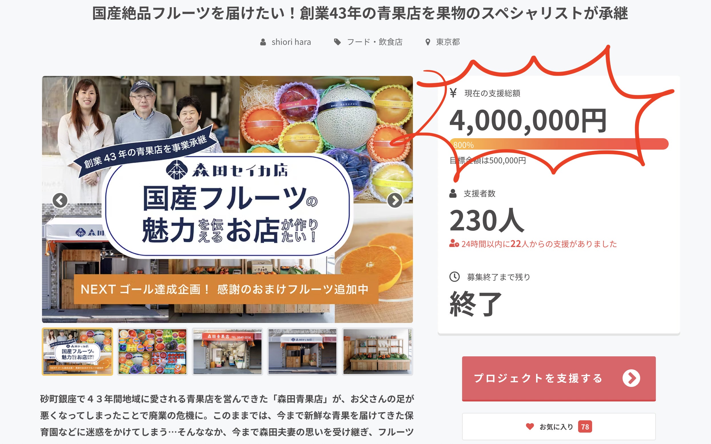 森田セイカ店のクラファンのご支援本当にありがとうございます!皆さまのご支援のおかげでこの度、森田セイカ店オンラインショップをオープンさせることができました!!https://moritaseikaten.jp/本当に本当にありがとうございます!リターンにお送りさていただいた中に、フルーツの詳細や食べ方を入れた際に、オンラインショップのお知らせをしておりました。一足早くリターンのフルーツが届いた方で、森田セイカ店のオンラインショップを知ってくださった方からは、リピート注文もいただいております!本当に嬉しい限りです。これからおすすめのフルーツは、熱くなってきたこの時期に食べたいスイカ。中でも群馬県藪塚のスイカは絶品です!!小玉スイカは、皮キワキワまで甘く食べることができます。ぜひシャリシャリで甘い初夏にピッタリのスイカを味わってみてくださいね!https://bit.ly/3OW82aL【5月の特選フルーツセット】を選んでくださった皆さま、リターンの発送まで今しばらくお待ちください。発送は5月の中旬以降を予定しております。発送日が確定しましたら、活動報告とメールにてお知らせいたします。本当にご支援ありがとうございます!今後は、お店オープンに向けて準備していきます。今後とも森田セイカ店をよろしくお願いいたします。