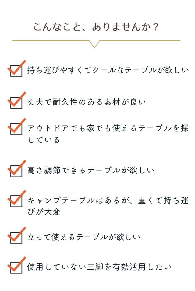 軽くコンパクトに持ち運べ高さも自在なテーブル