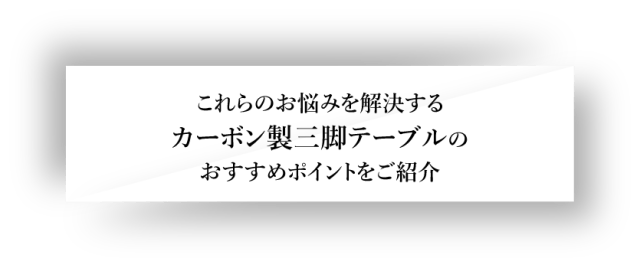 カーボン製三脚テーブルなら場所を選ばず使用できるため屋外ではもちろん、家の好きなところで作業できます。