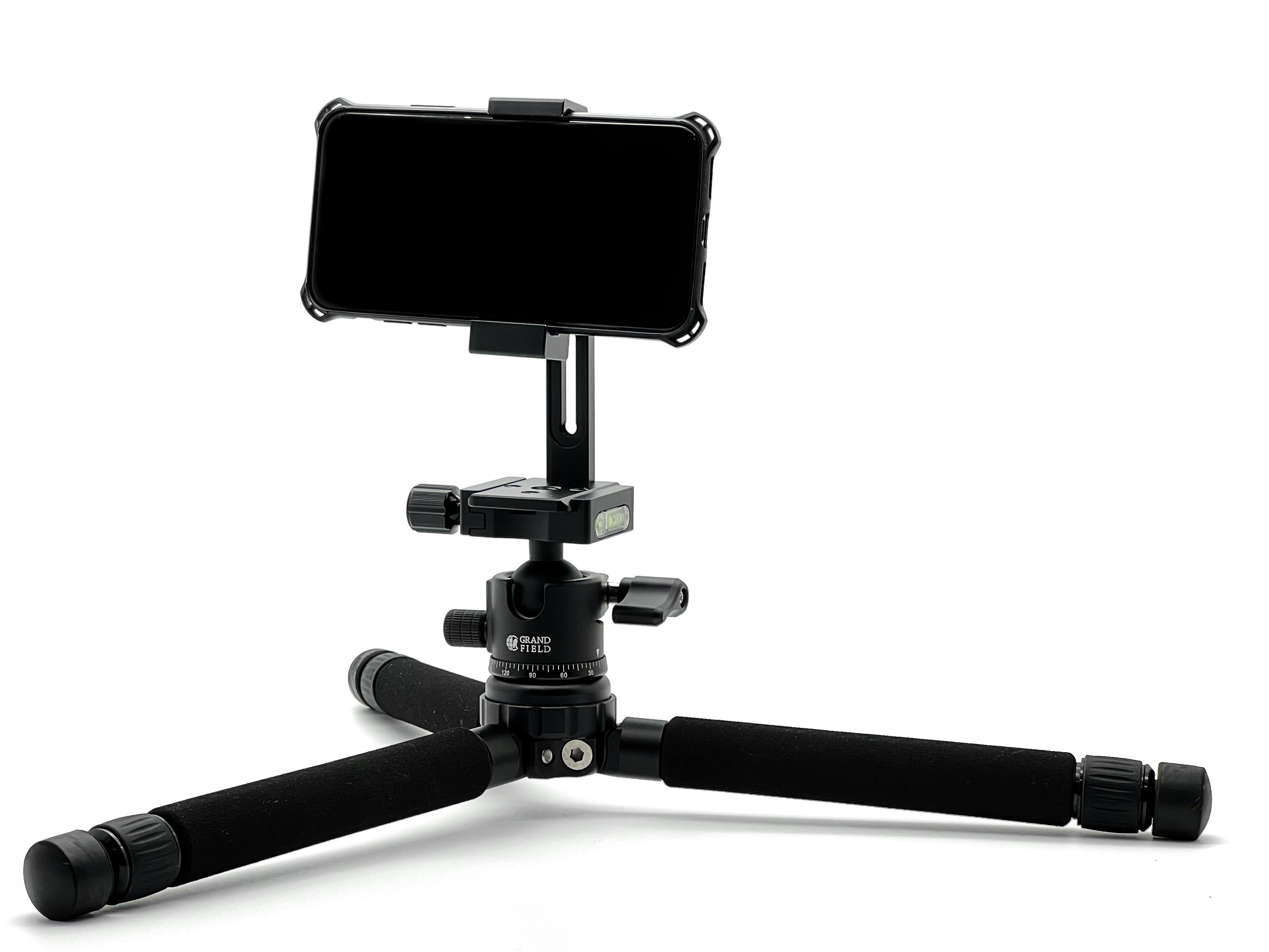 オプション品でアルミ削り出しボール雲台とアルカスイス対応スマホホルダーも!