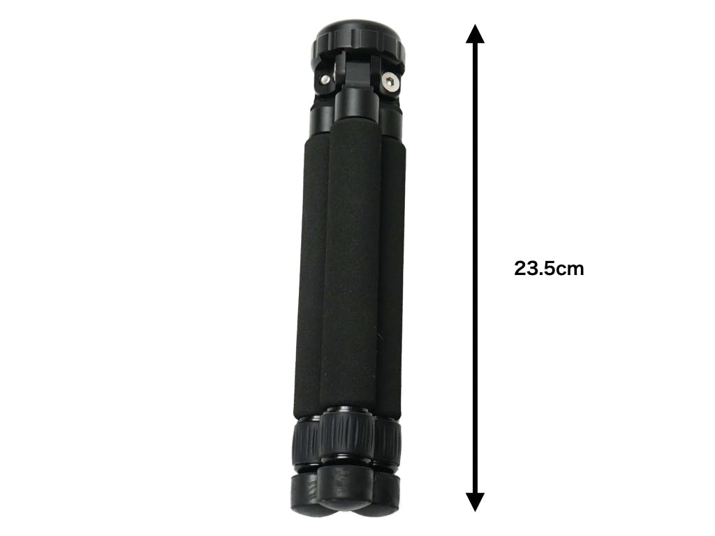 ローテーブルメインで使いたい人向けにアルミ製ミニ三脚もご用意しました。