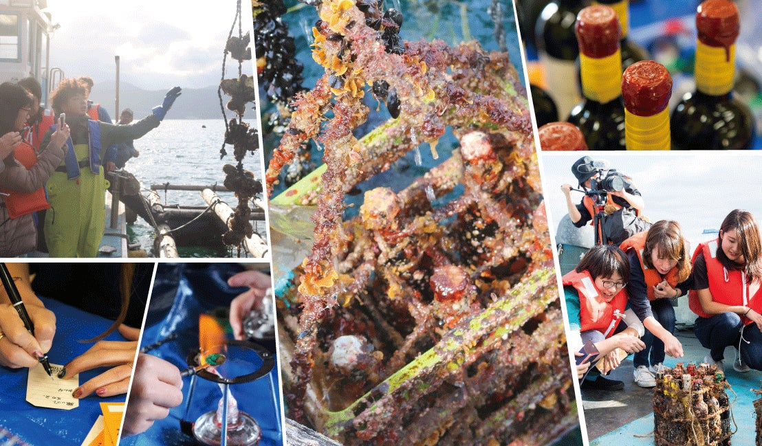 地元の日本酒やワインを漁船に乗って自分で海中熟成。海中熟成酒の飲みくらべや海産物の試食なども。